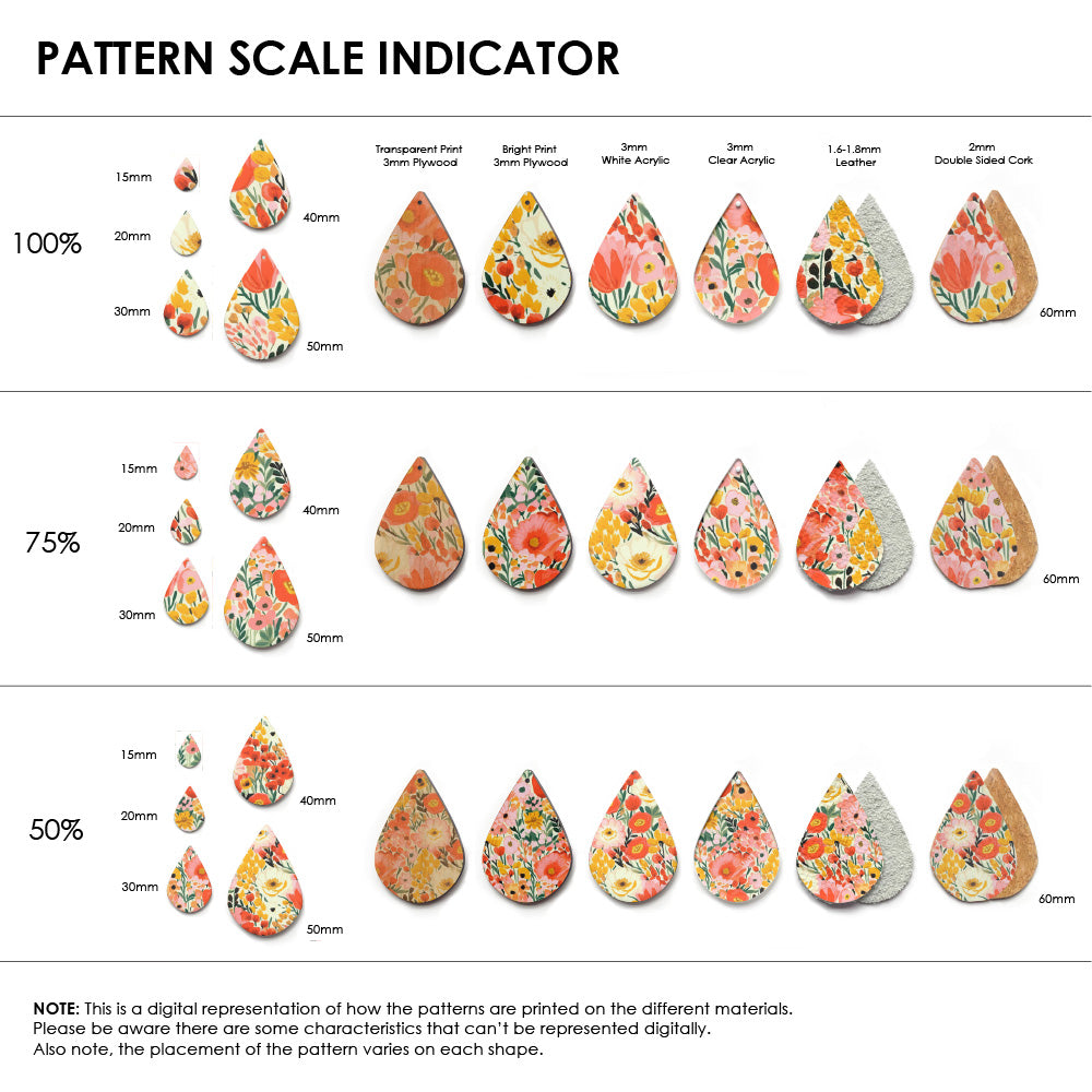 Our patterns can be printed onto Genuine Cowhide Leather, Double Sided Cork, Pine Plywood, White Acrylic or Clear Acrylic or Yupo Paper sheets or earring blanks for making your own earrings. Simply add your own embellishments and findings to make them truly your own.
