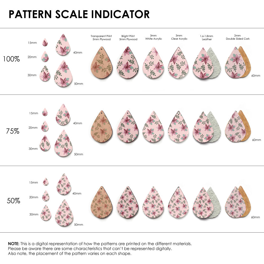 Our patterns can be printed onto Genuine Cowhide Leather, Double Sided Cork, Pine Plywood, White Acrylic or Clear Acrylic or Yupo Paper sheets or earring blanks for making your own earrings. Simply add your own embellishments and findings to make them truly your own.