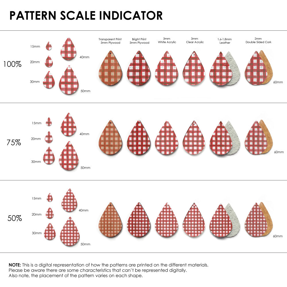 The catalogue image shown is one repeat. If the pattern is seamless, we repeat the pattern to fit to the sheet size, and then scale it so it is suitable for small pieces like earrings.