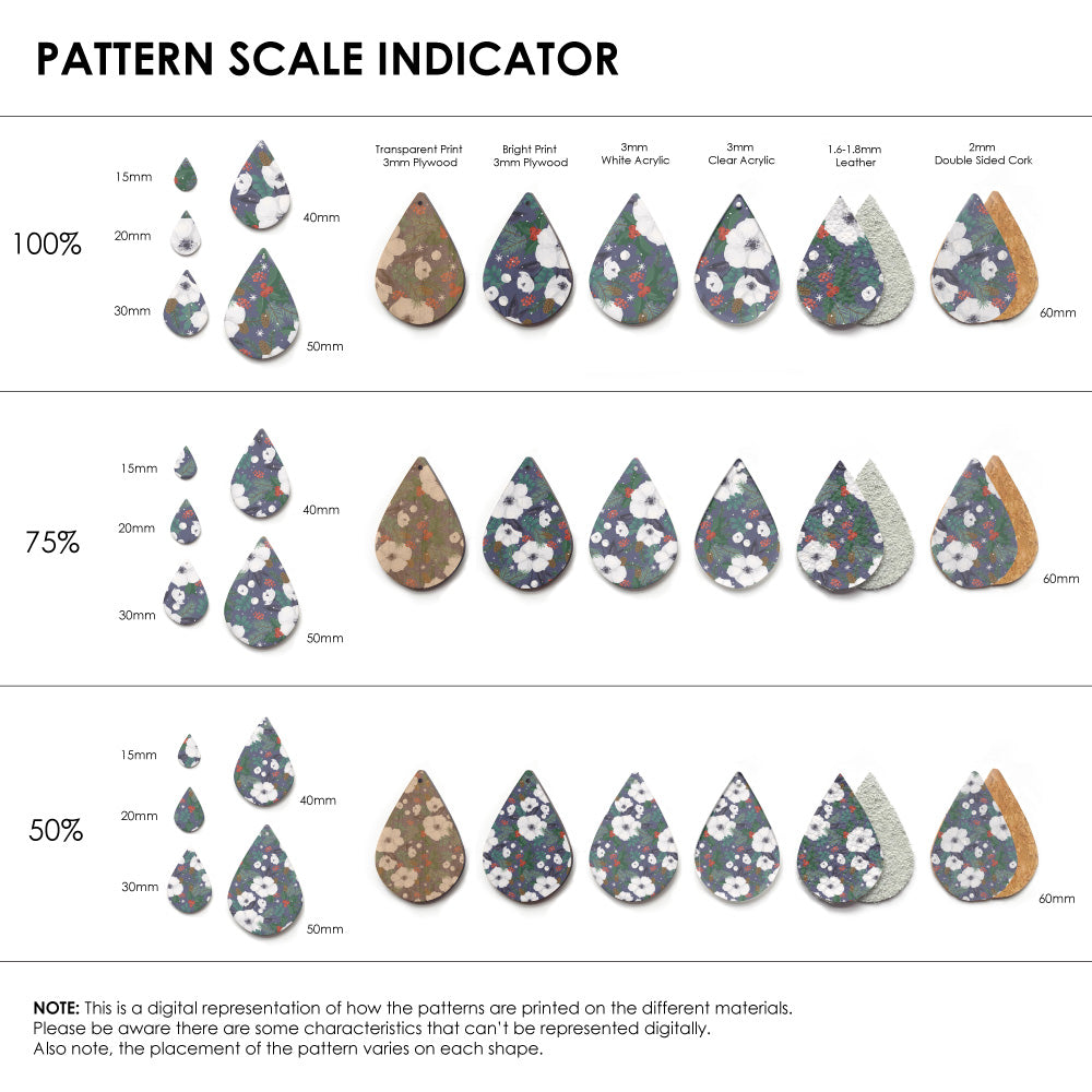 Our patterns can be printed onto Genuine Cowhide Leather, Double Sided Cork, Pine Plywood, White Acrylic or Clear Acrylic or Yupo Paper sheets or earring blanks for making your own earrings. Simply add your own embellishments and findings to make them truly your own.