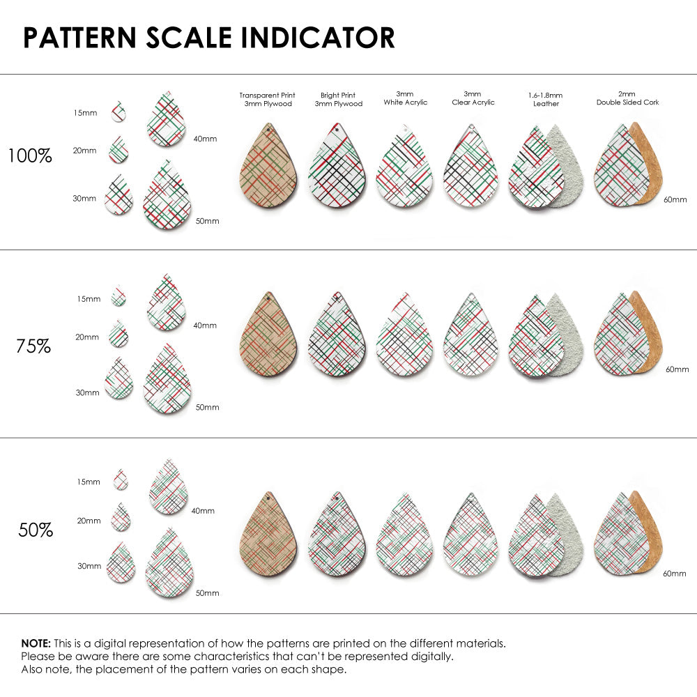 The catalogue image shown is one repeat. If the pattern is seamless, we repeat the pattern to fit to the sheet size, and then scale it so it is suitable for small pieces like earrings.