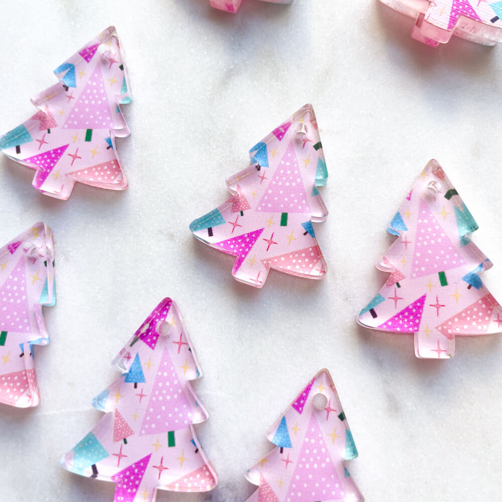 Clear Acrylic - 3cm Christmas Tree - 1 Hole - Christmas - 309