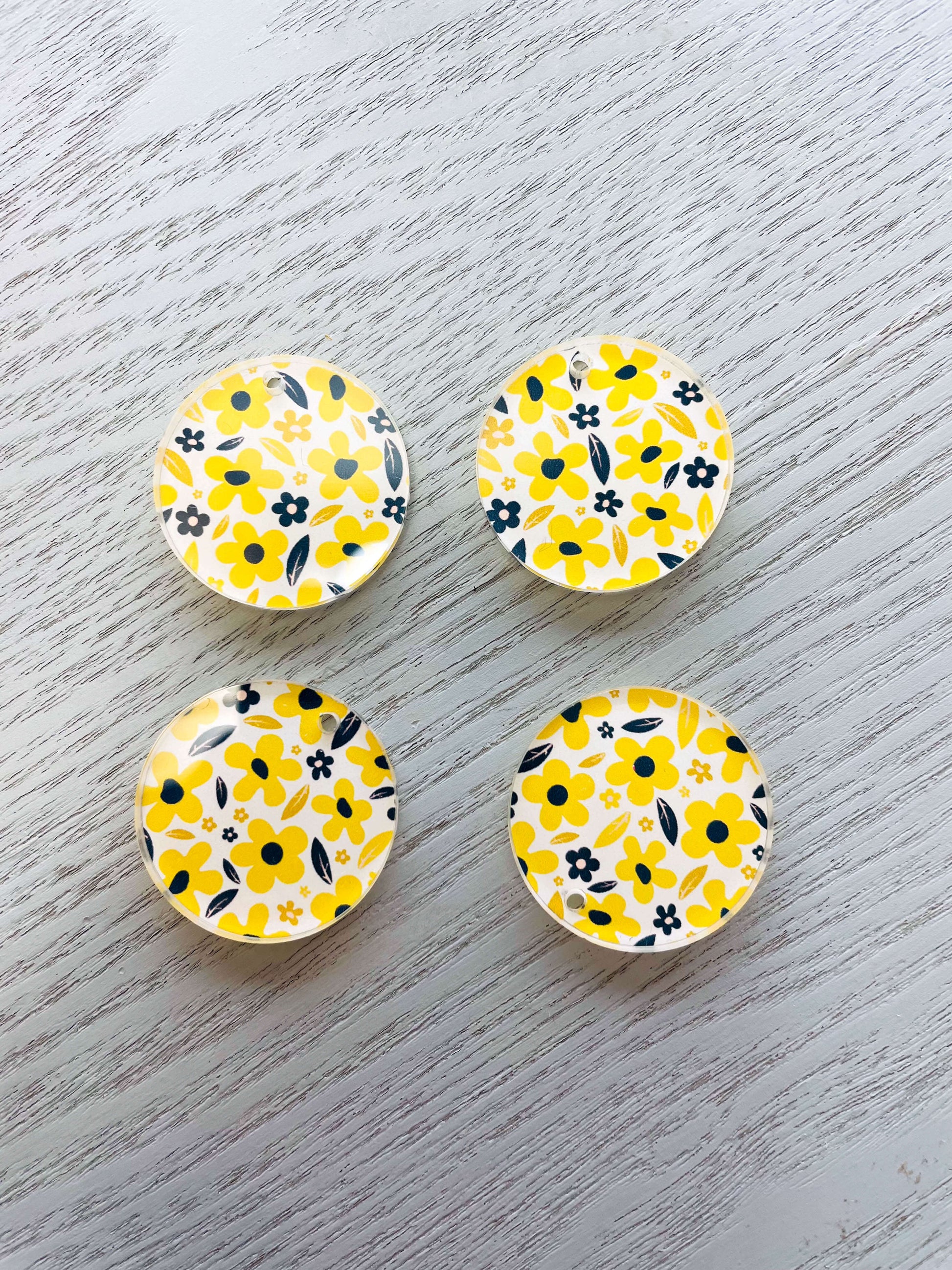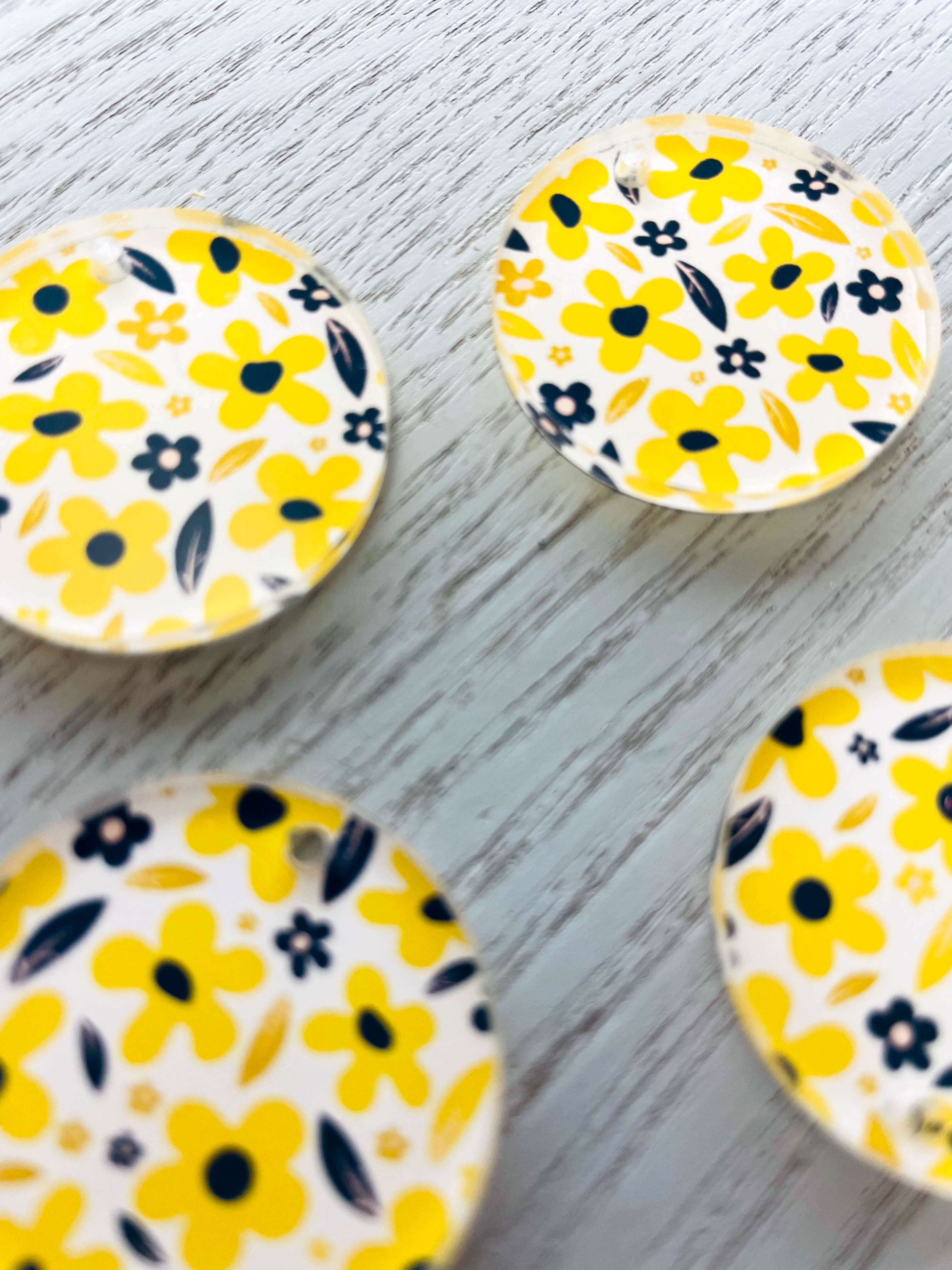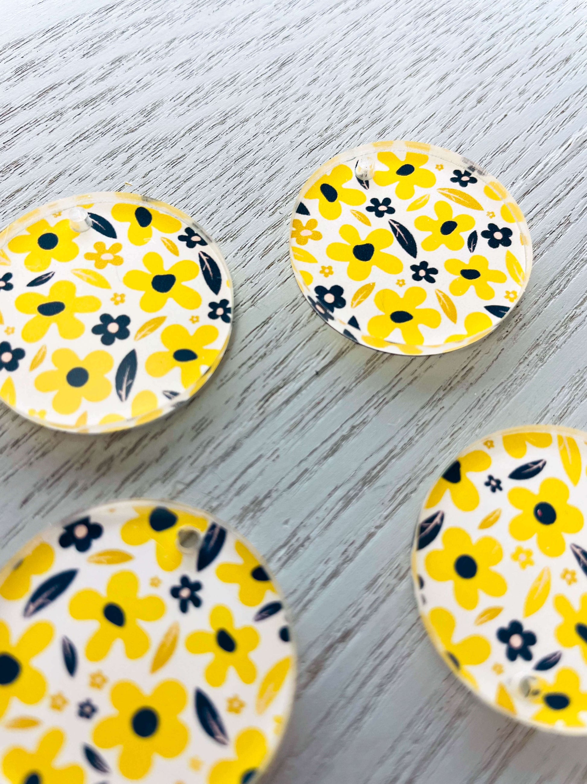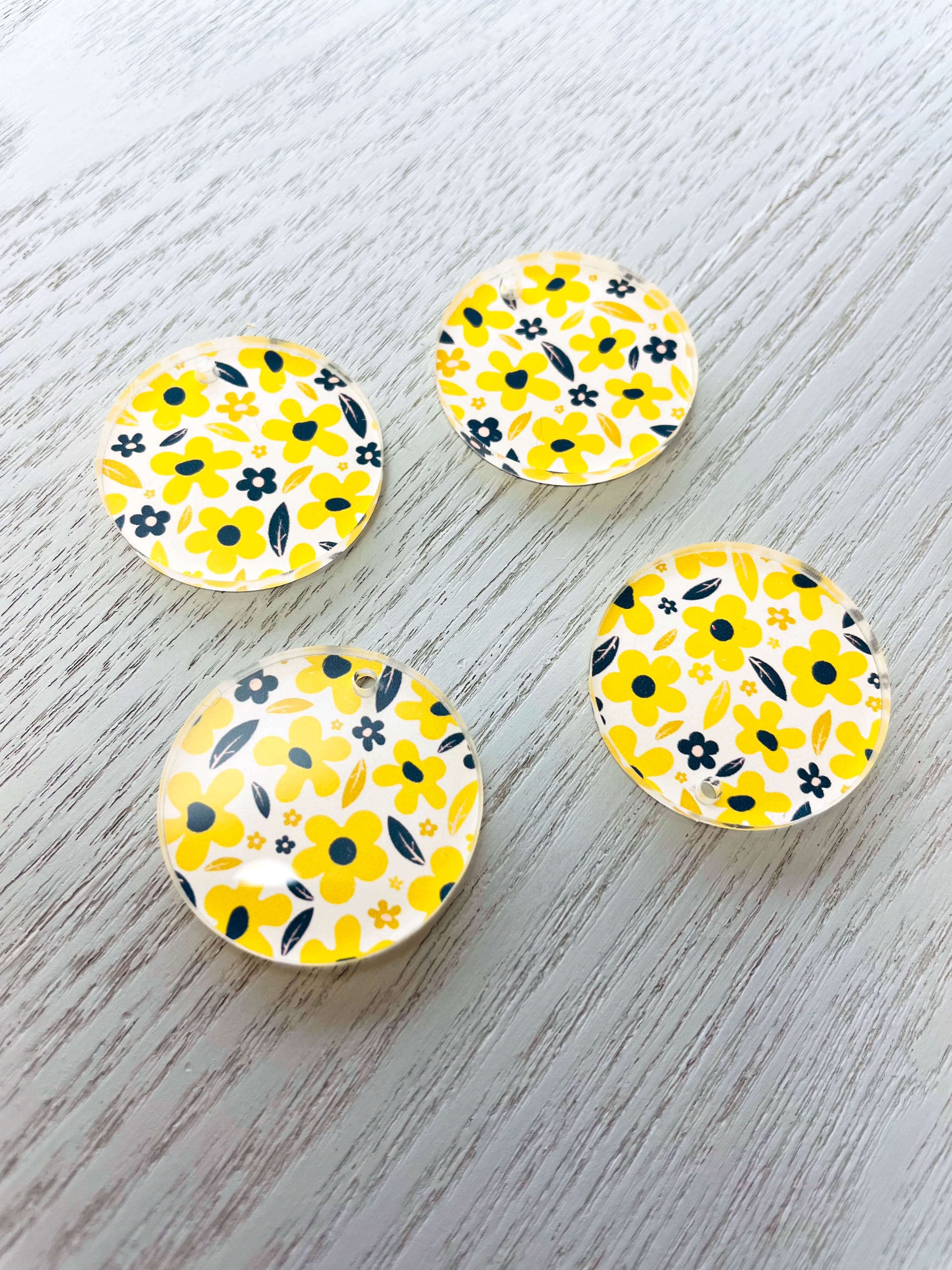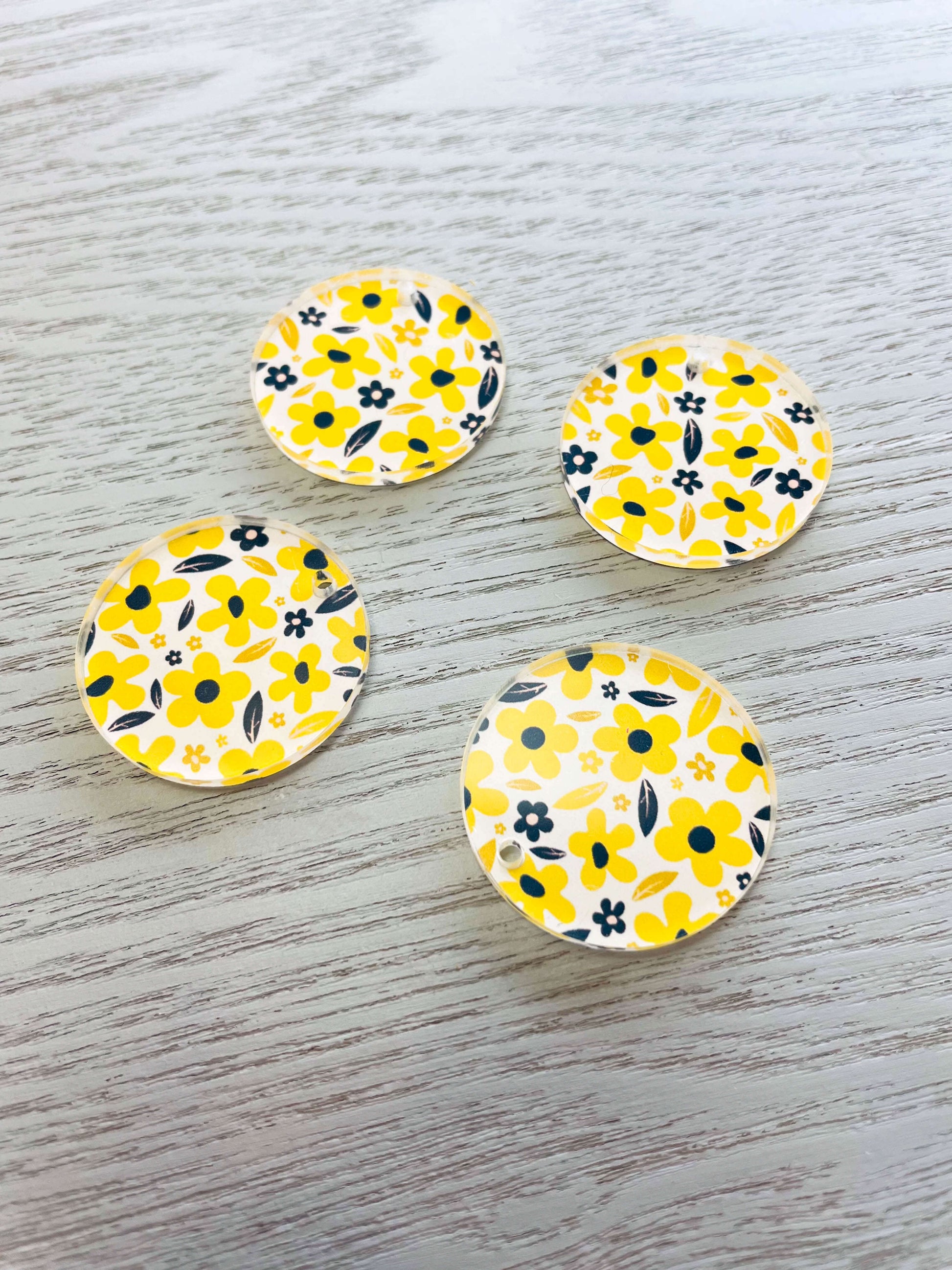Clear Acrylic - 3cm Circle - Abstract Floral - 19
