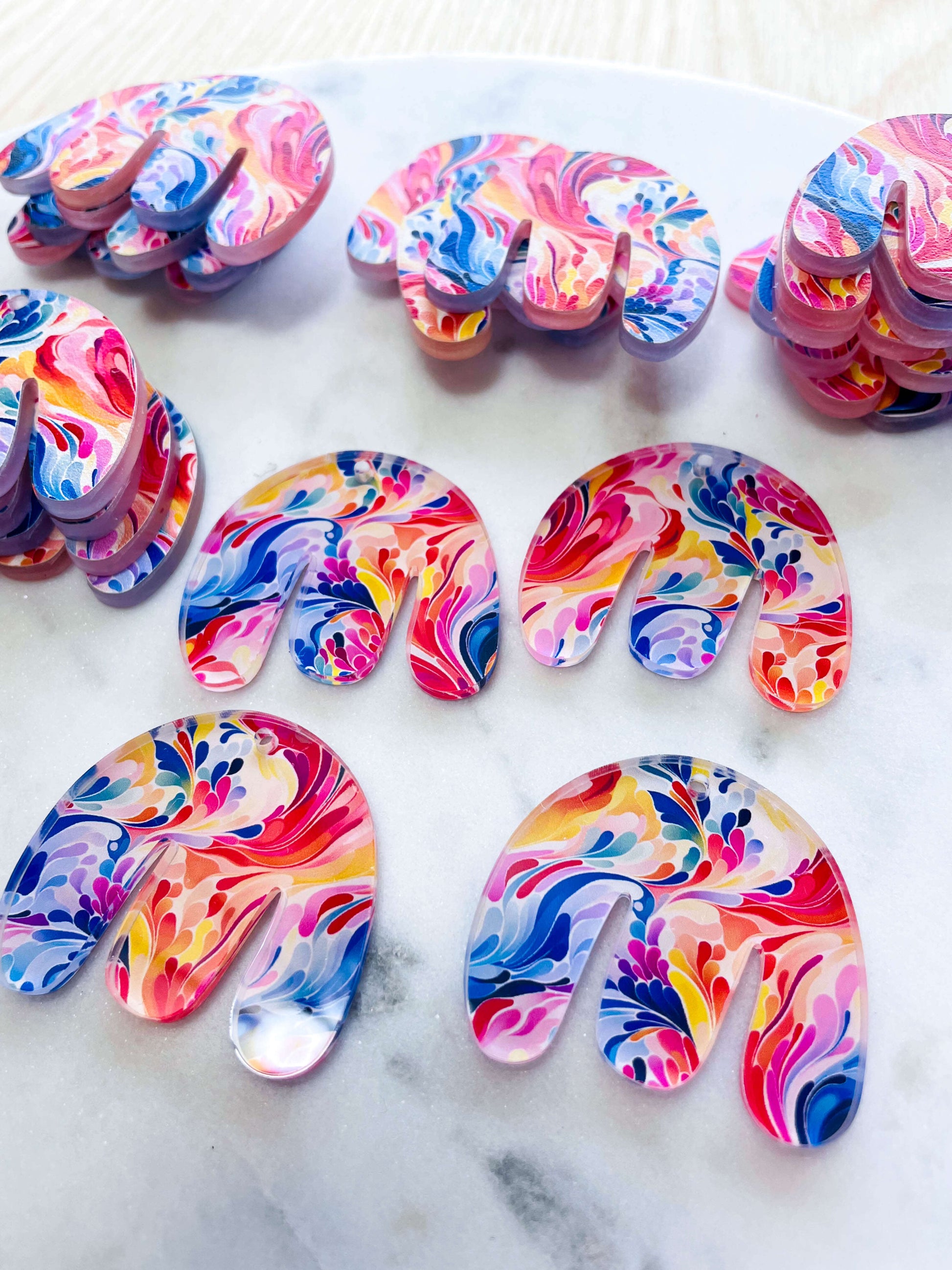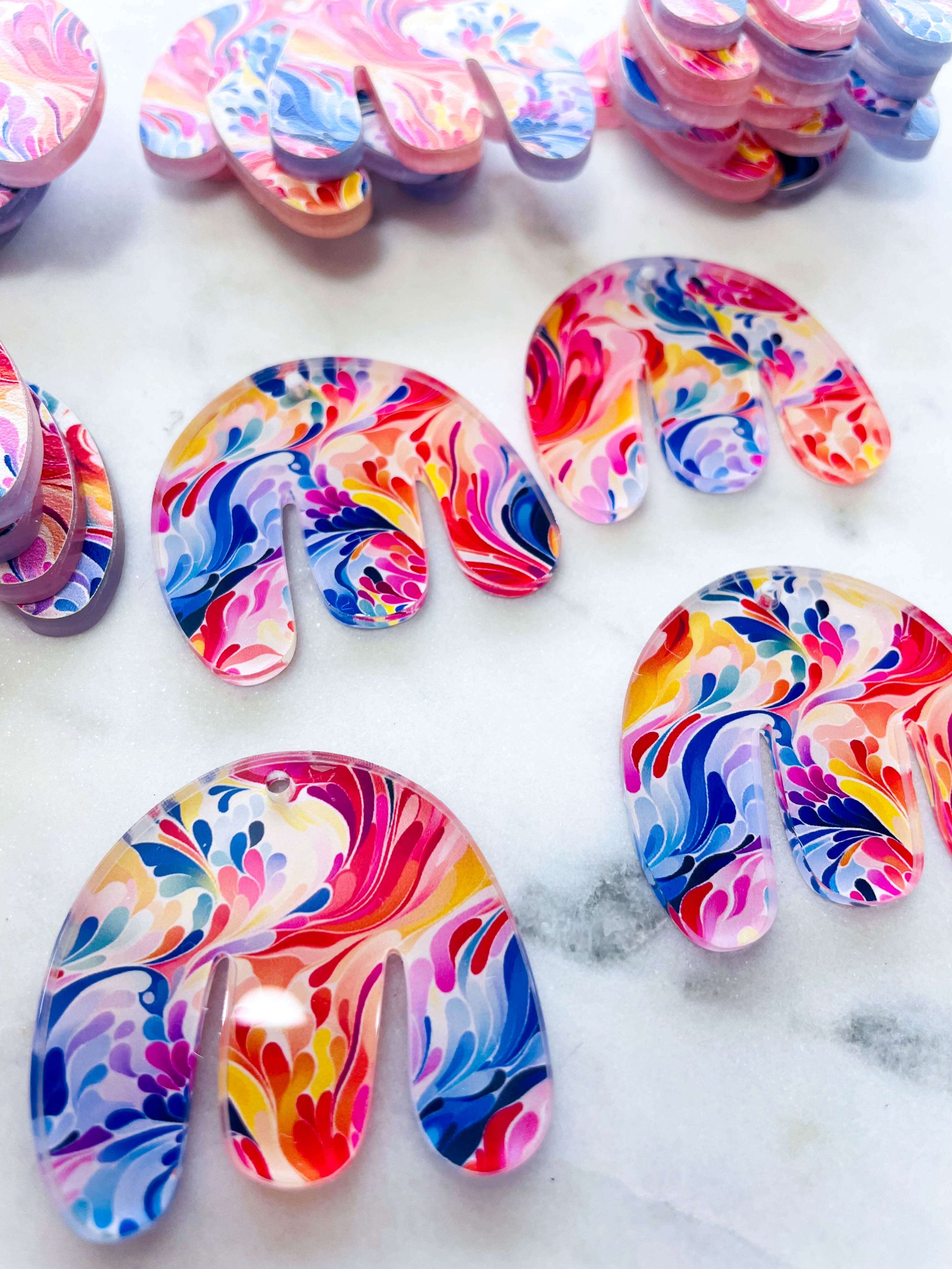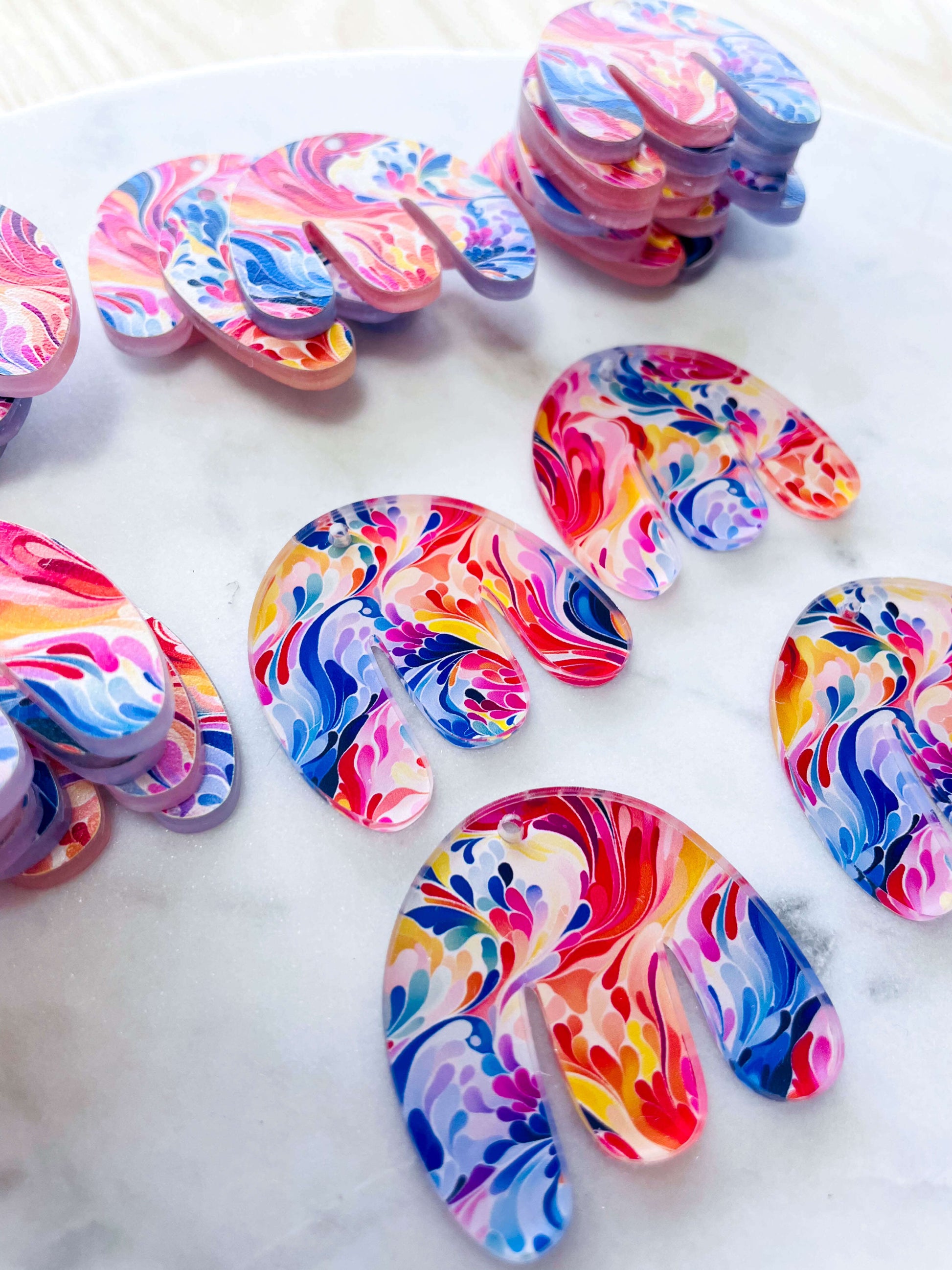 Our patterns can be printed onto Genuine Cowhide Leather, Double Sided Cork, Pine Plywood, White Acrylic or Clear Acrylic or Yupo Paper sheets or earring blanks for making your own earrings. Simply add your own embellishments and findings to make them truly your own.