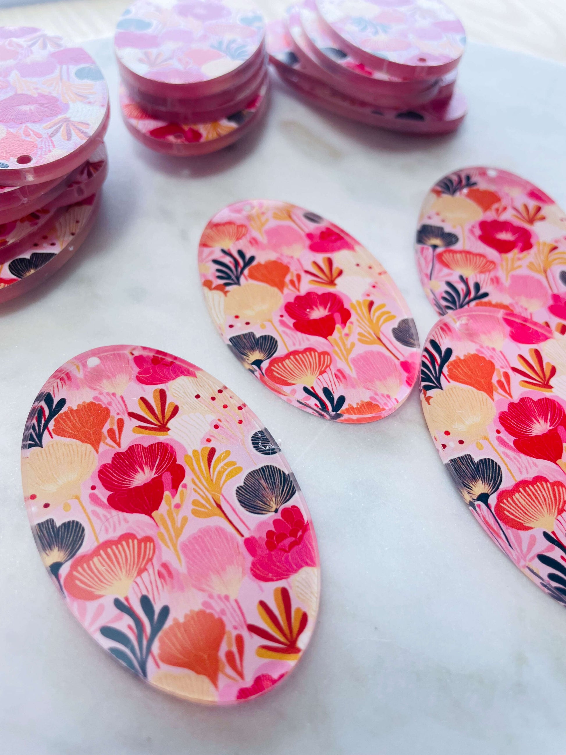 Clear Acrylic - Large Oval - Abstract Floral - 27