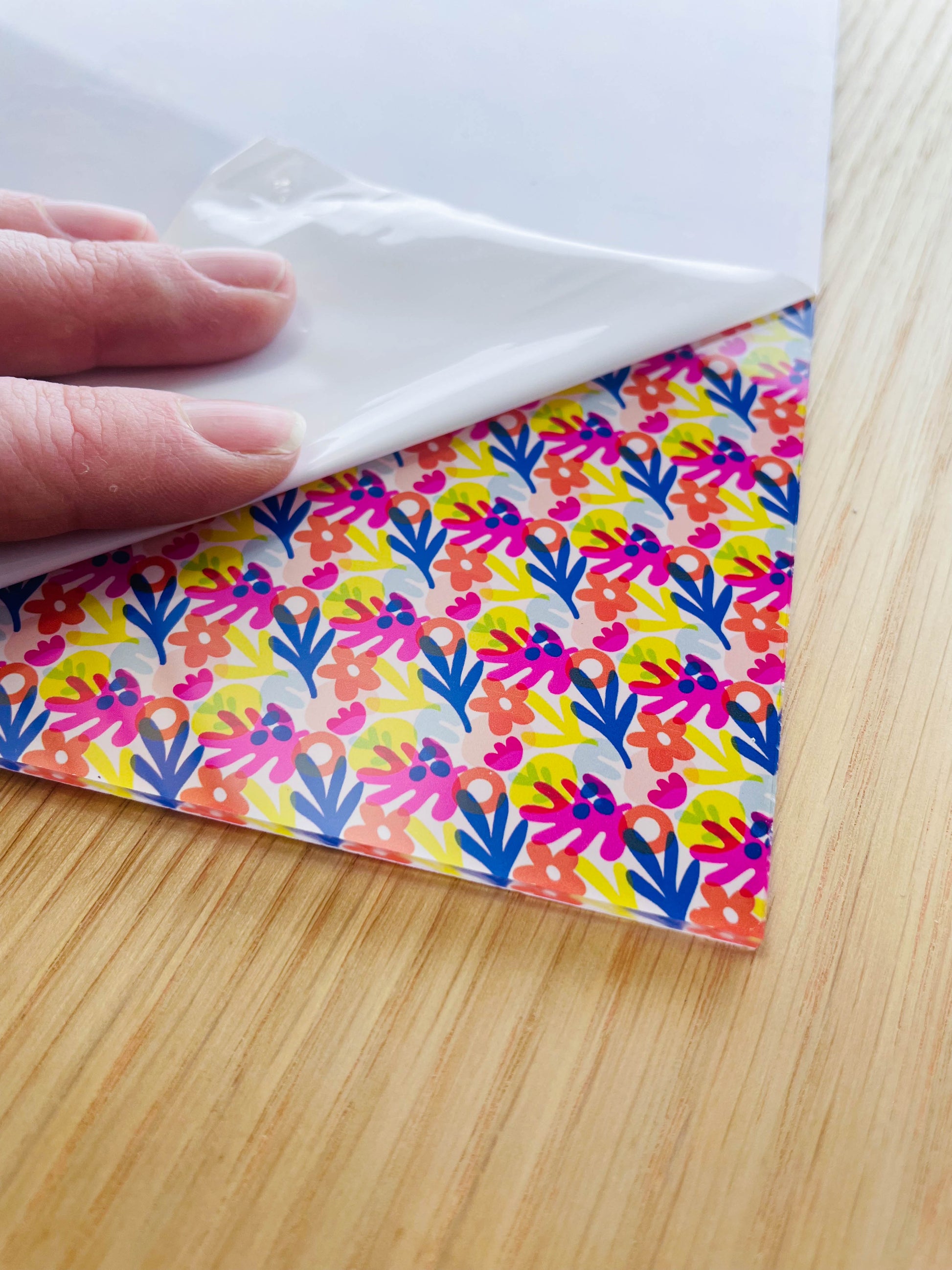 Back Side: The pattern is printed again on the back with a layer of white between, this makes the piece is double sided.