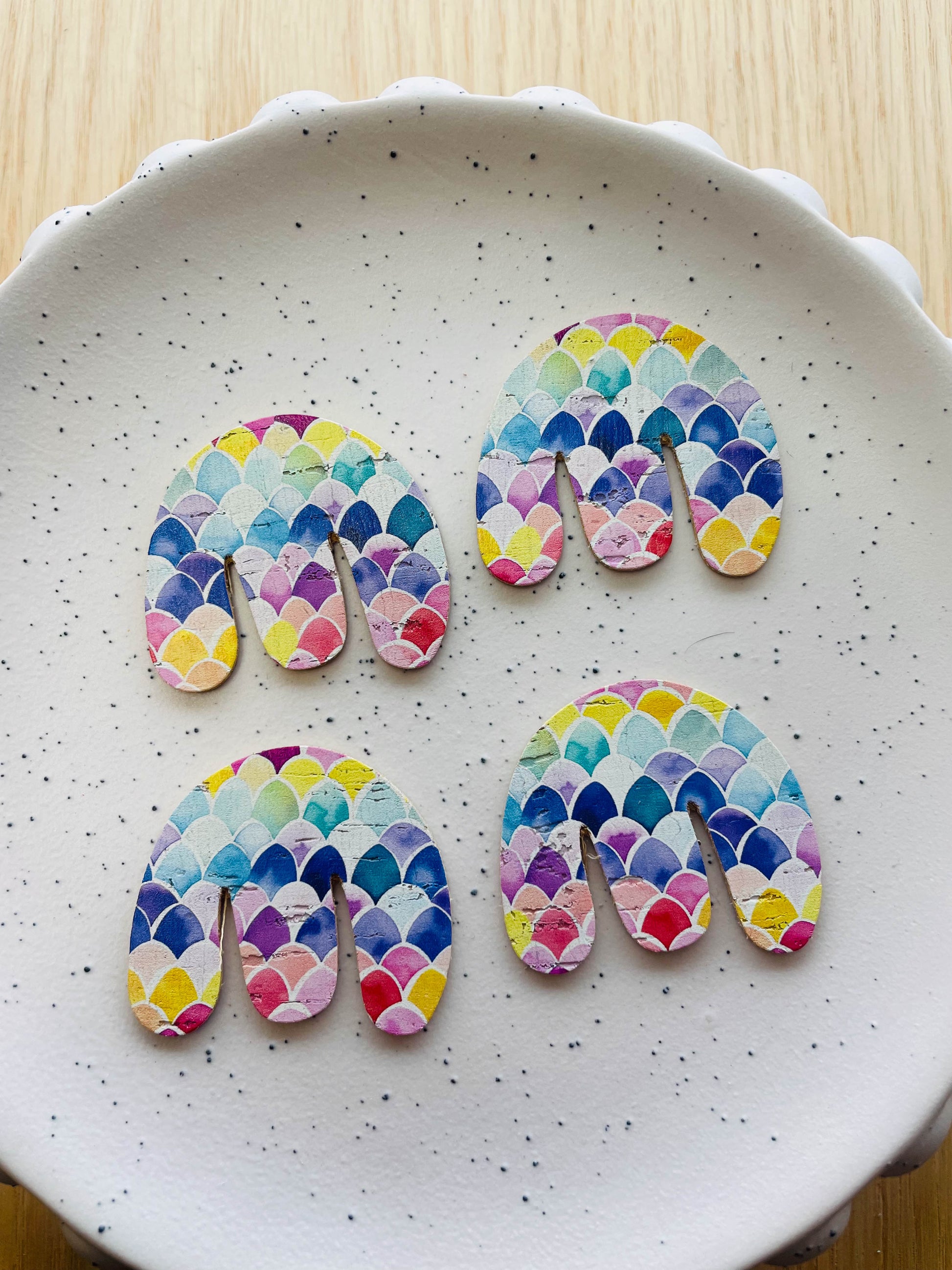 Our patterns can be printed onto Genuine Cowhide Leather, Double Sided Cork, Pine Plywood, White Acrylic or Clear Acrylic or Yupo Paper sheets or earring blanks for making your own earrings. Simply add your own embellishments and findings to make them truly your own.