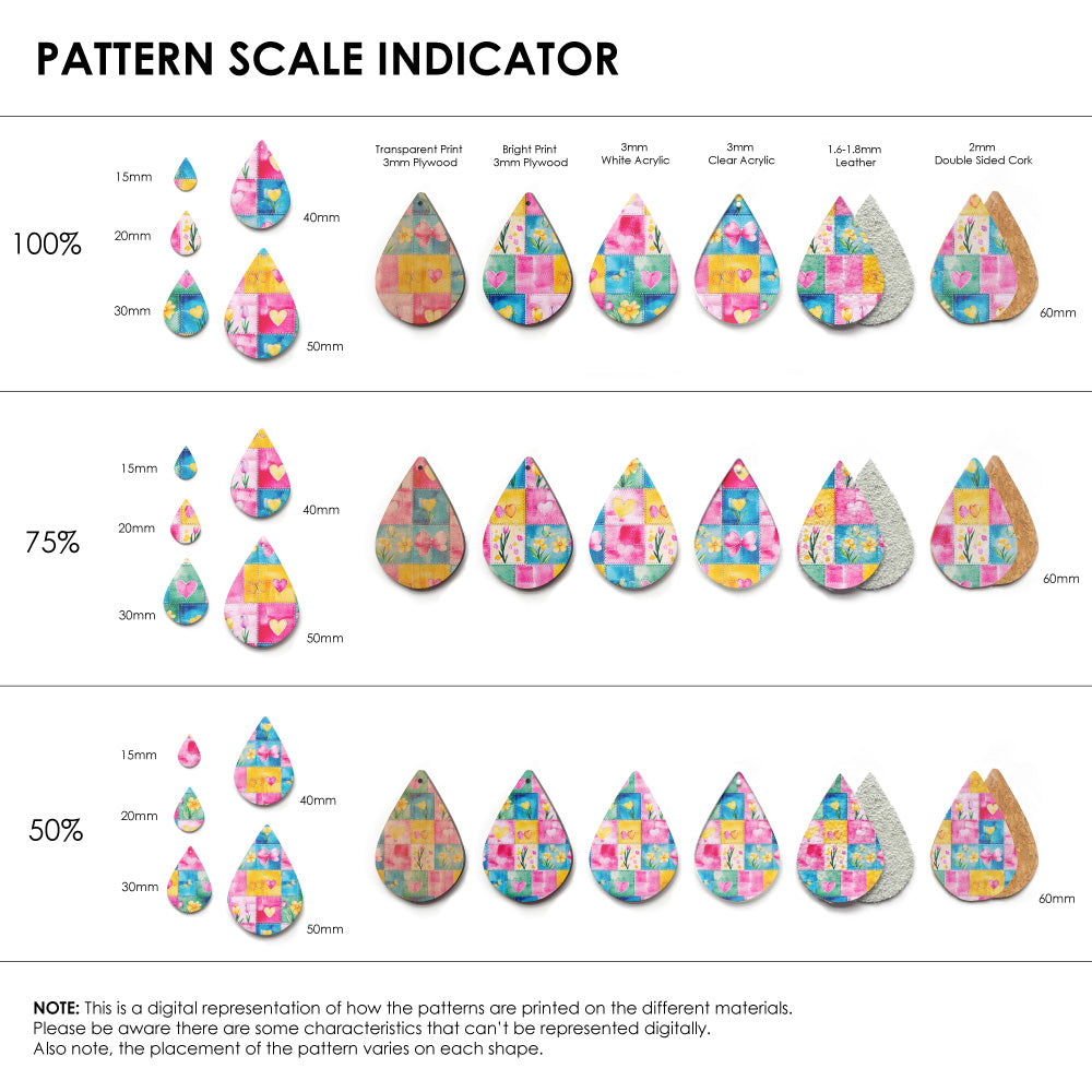 Illustrated shapes are sold by the pair (2pcs). Patterned Shapes are sold by the pack size. Sheets are sold as single sheets