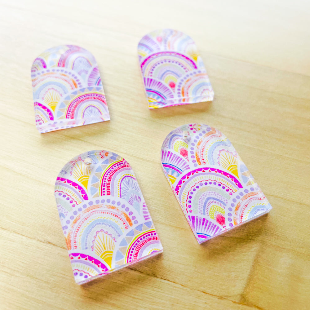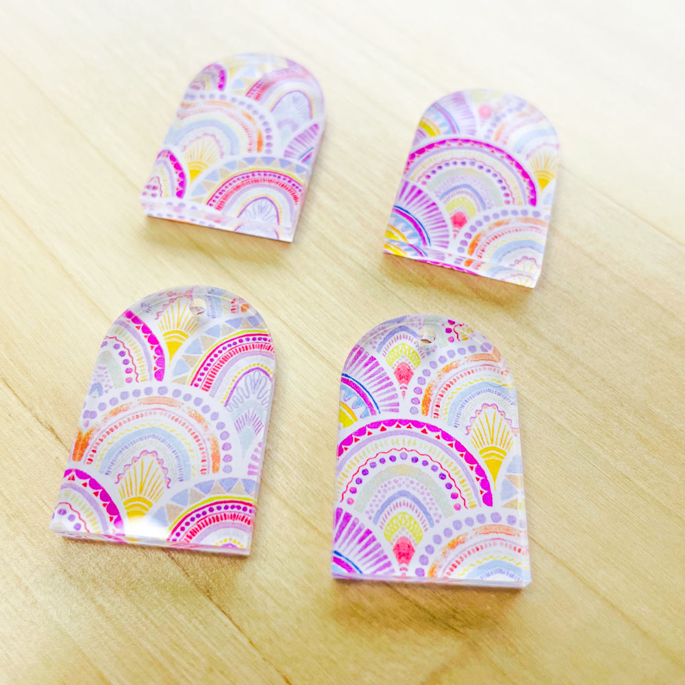 Our patterns can be printed onto Genuine Cowhide Leather, Double Sided Cork, Pine Plywood, White Acrylic or Clear Acrylic or Yupo Paper sheets or earring blanks for making your own earrings. Simply add your own embellishments and findings to make them truly your own.