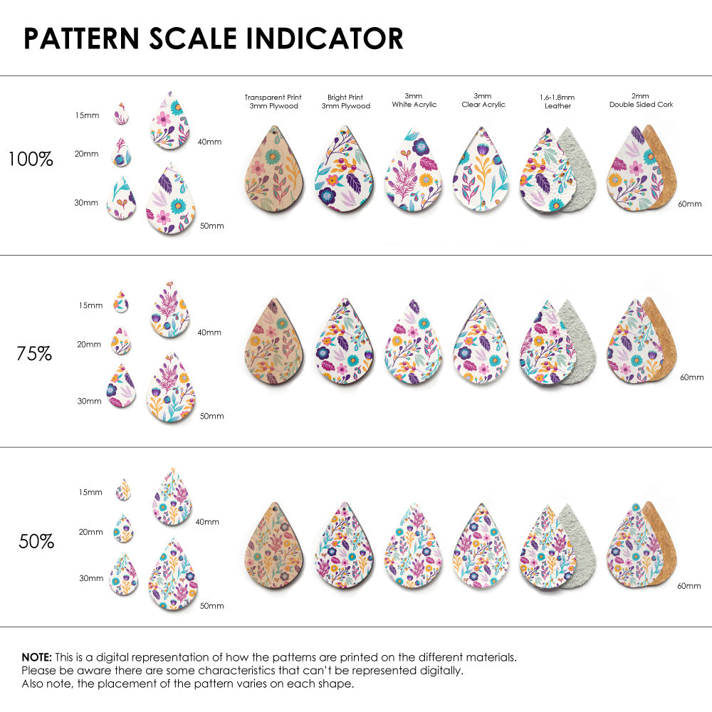 Our patterns can be printed onto Genuine Cowhide Leather, Double Sided Cork, Pine Plywood, White Acrylic or Clear Acrylic or Yupo Paper sheets or earring blanks for making your own earrings. Simply add your own embellishments and findings to make them truly your own.