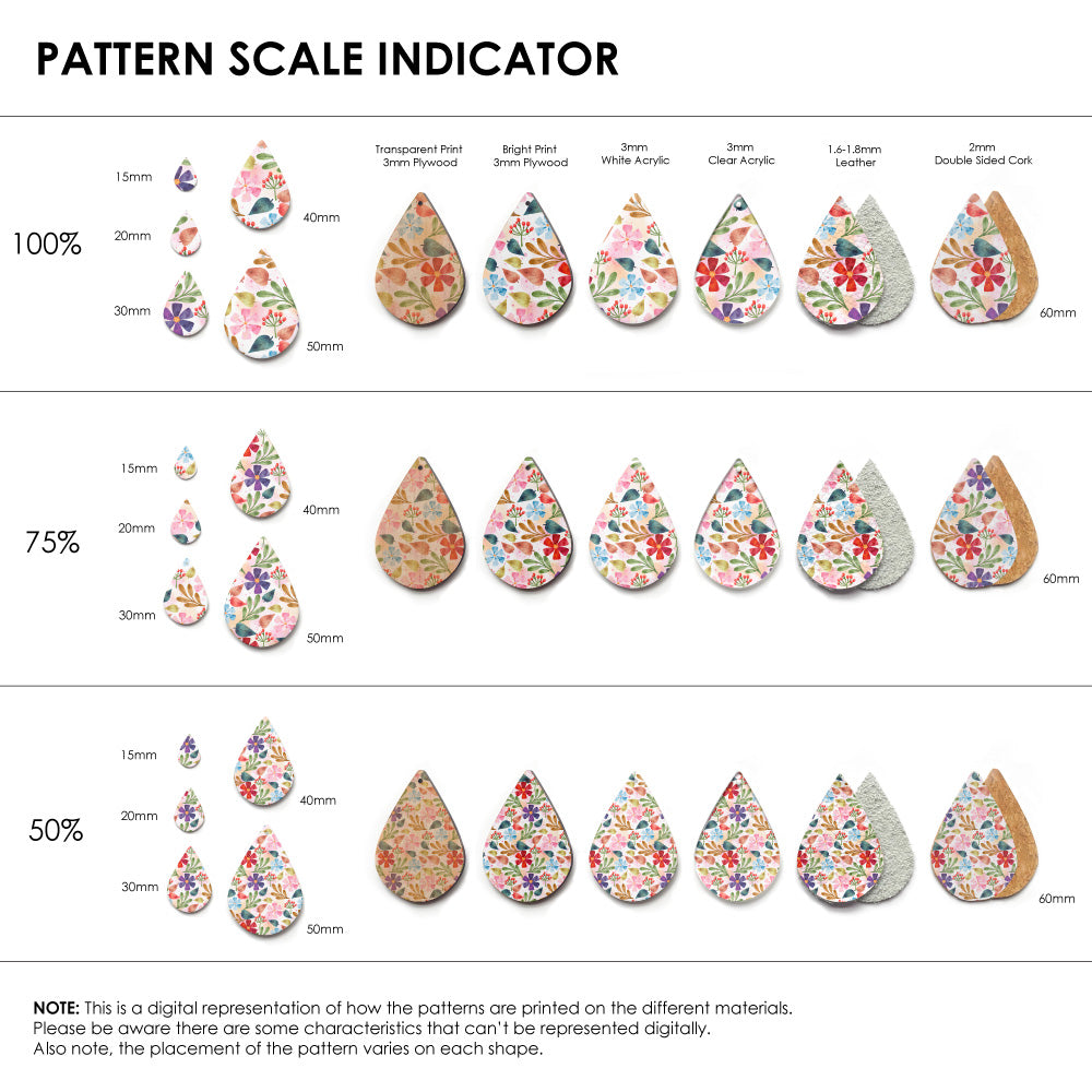 Our patterns can be printed onto Genuine Cowhide Leather, Double Sided Cork, Pine Plywood, White Acrylic or Clear Acrylic or Yupo Paper sheets or earring blanks for making your own earrings. Simply add your own embellishments and findings to make them truly your own.