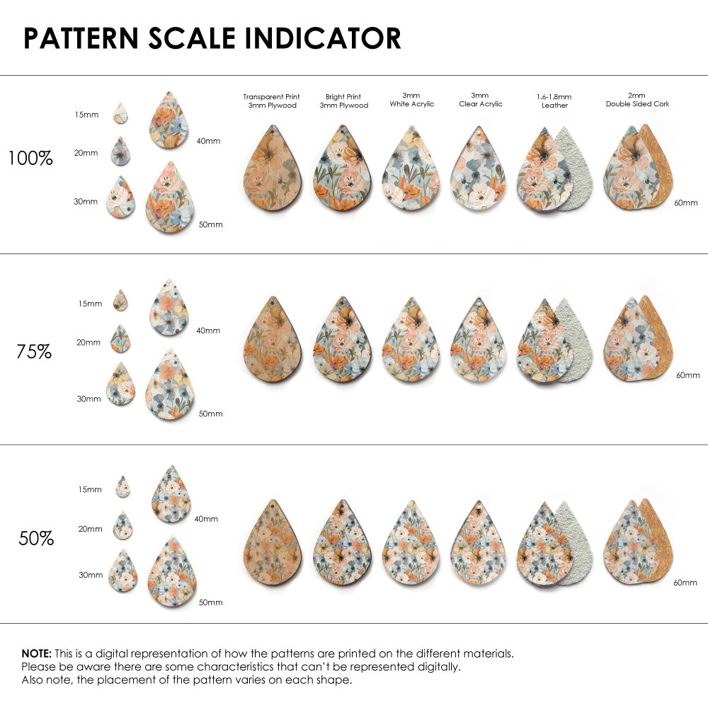 Our patterns can be printed onto Genuine Cowhide Leather, Double Sided Cork, Pine Plywood, White Acrylic or Clear Acrylic or Yupo Paper sheets or earring blanks for making your own earrings. Simply add your own embellishments and findings to make them truly your own.