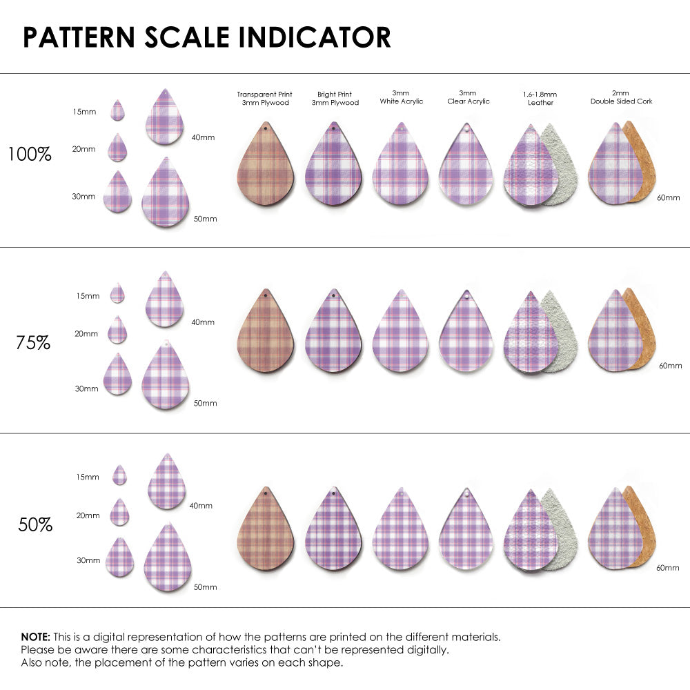 Our patterns can be printed onto Genuine Cowhide Leather, Double Sided Cork, Pine Plywood, White Acrylic or Clear Acrylic or Yupo Paper sheets or earring blanks for making your own earrings. Simply add your own embellishments and findings to make them truly your own.