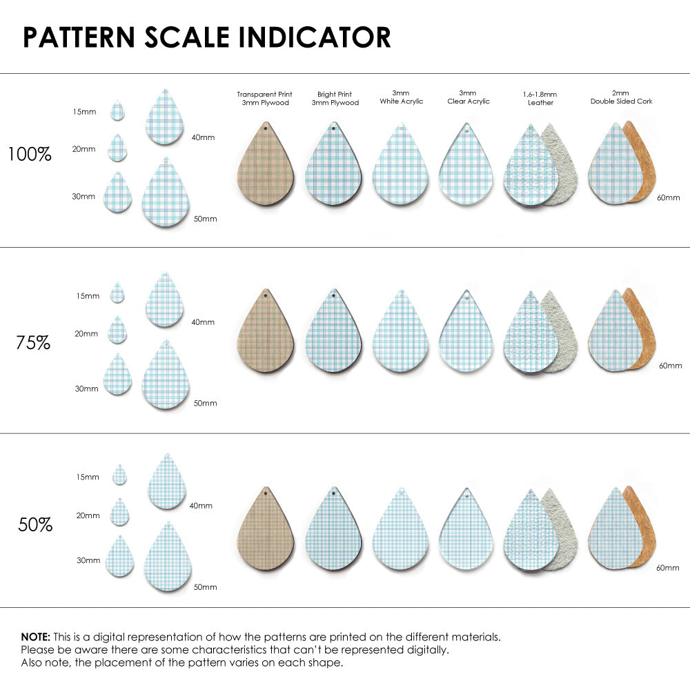 The catalogue image shown is one repeat. If the pattern is seamless, we repeat the pattern to fit to the sheet size, and then scale it so it is suitable for small pieces like earrings.