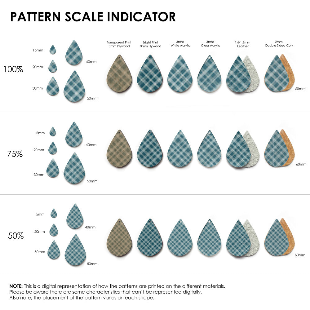 Our patterns can be printed onto Genuine Cowhide Leather, Double Sided Cork, Pine Plywood, White Acrylic or Clear Acrylic or Yupo Paper sheets or earring blanks for making your own earrings. Simply add your own embellishments and findings to make them truly your own.