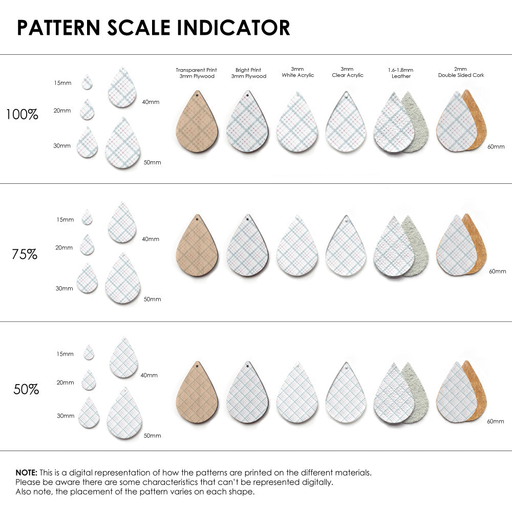 Our patterns can be printed onto Genuine Cowhide Leather, Double Sided Cork, Pine Plywood, White Acrylic or Clear Acrylic or Yupo Paper sheets or earring blanks for making your own earrings. Simply add your own embellishments and findings to make them truly your own.