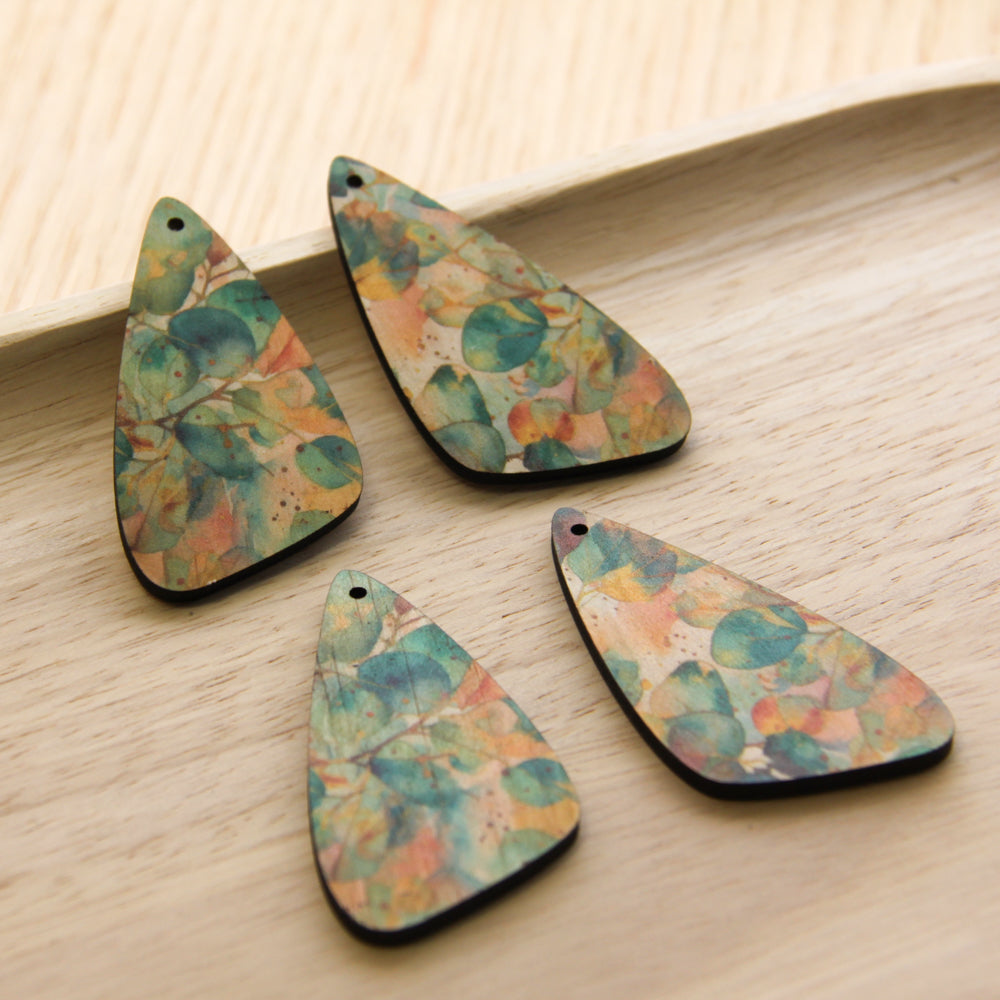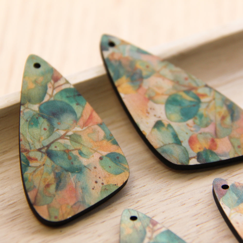 Our patterns can be printed onto Genuine Cowhide Leather, Double Sided Cork, Pine Plywood, White Acrylic or Clear Acrylic or Yupo Paper sheets or earring blanks for making your own earrings. Simply add your own embellishments and findings to make them truly your own.