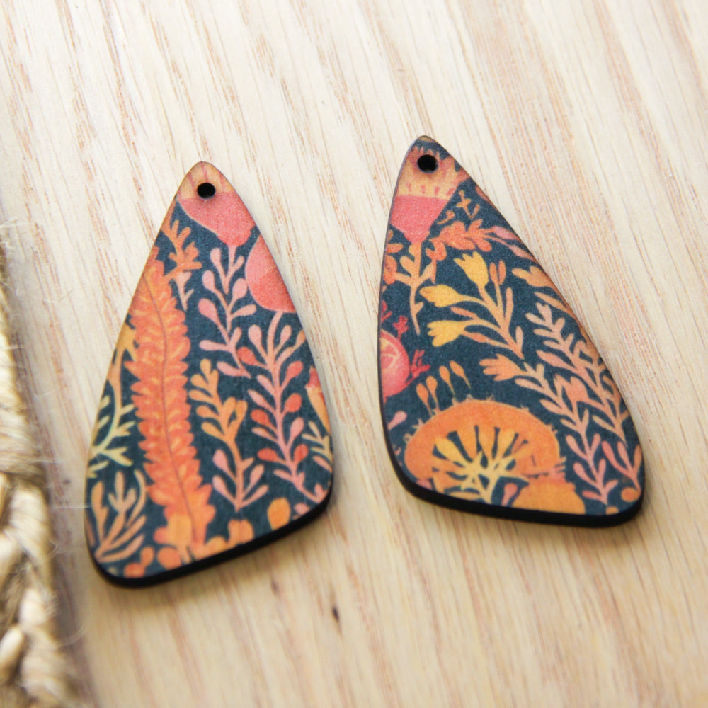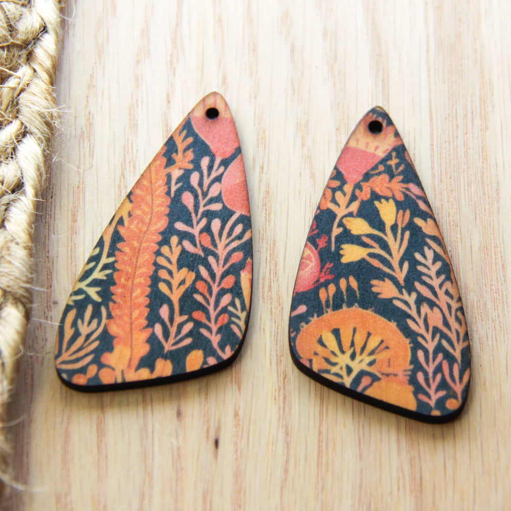 Our patterns can be printed onto Genuine Cowhide Leather, Double Sided Cork, Pine Plywood, White Acrylic or Clear Acrylic or Yupo Paper sheets or earring blanks for making your own earrings. Simply add your own embellishments and findings to make them truly your own.