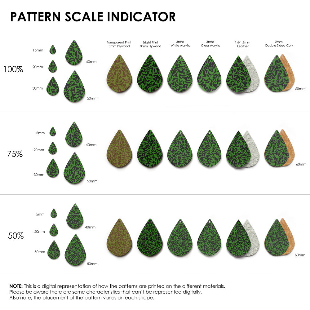Our patterns can be printed onto Genuine Cowhide Leather, Double Sided Cork, Pine Plywood, White Acrylic or Clear Acrylic or Yupo Paper sheets or earring blanks for making your own earrings. Simply add your own embellishments and findings to make them truly your own.