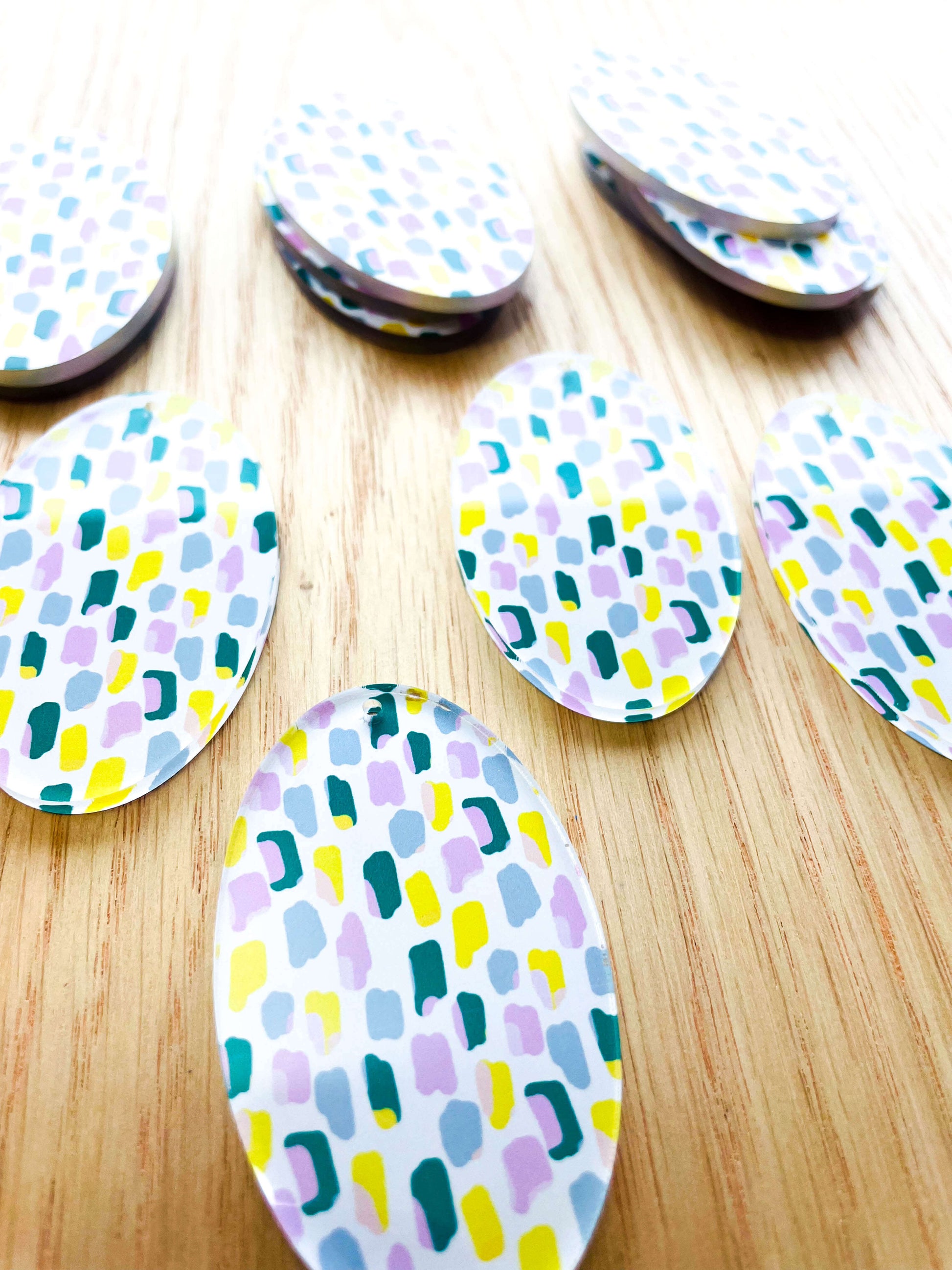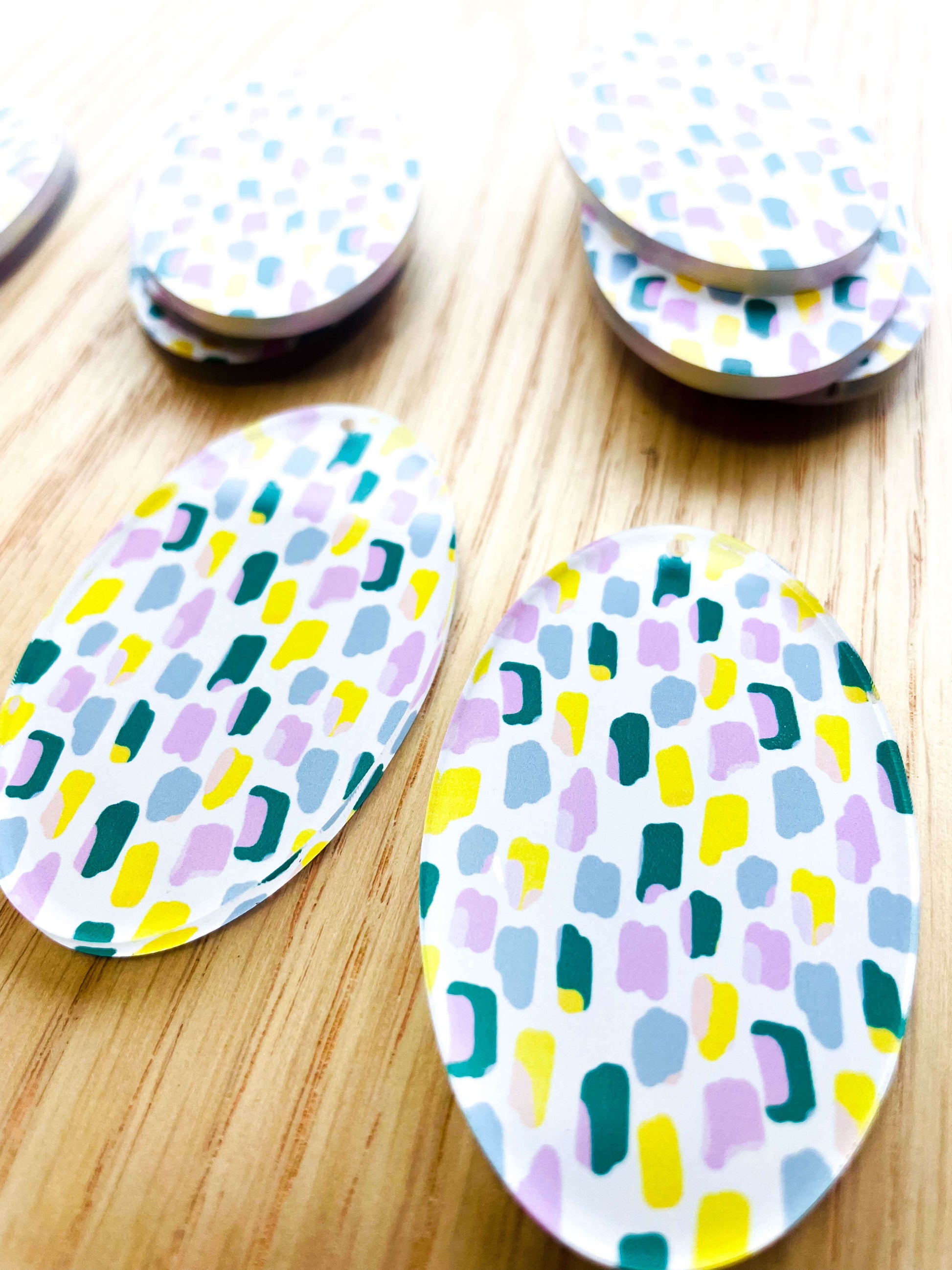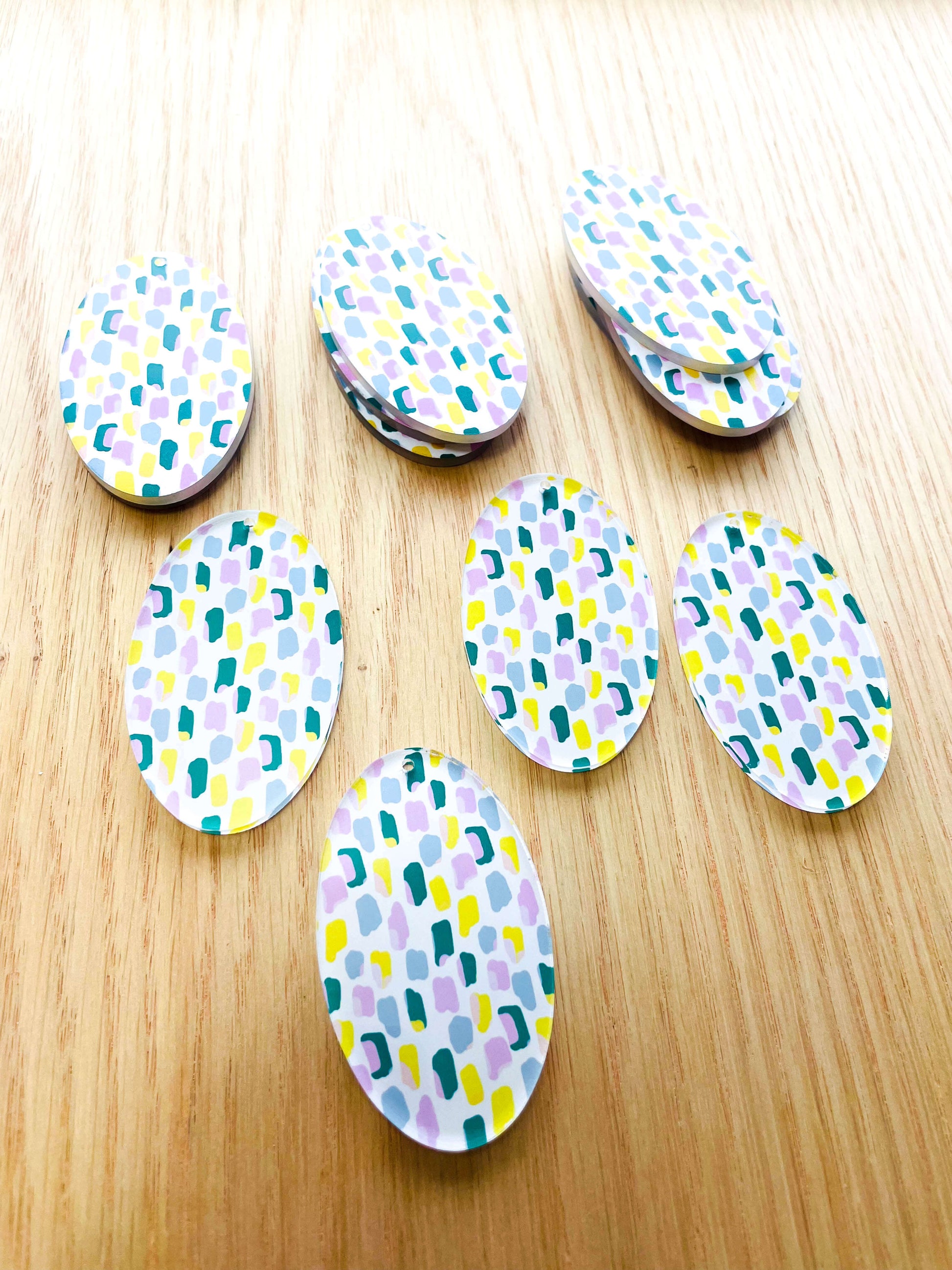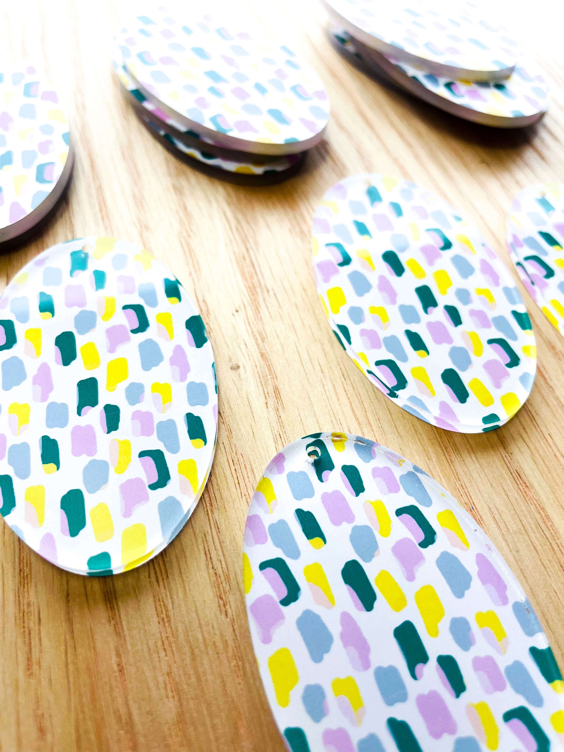 Our patterns can be printed onto Genuine Cowhide Leather, Double Sided Cork, Pine Plywood, White Acrylic or Clear Acrylic or Yupo Paper sheets or earring blanks for making your own earrings. Simply add your own embellishments and findings to make them truly your own.