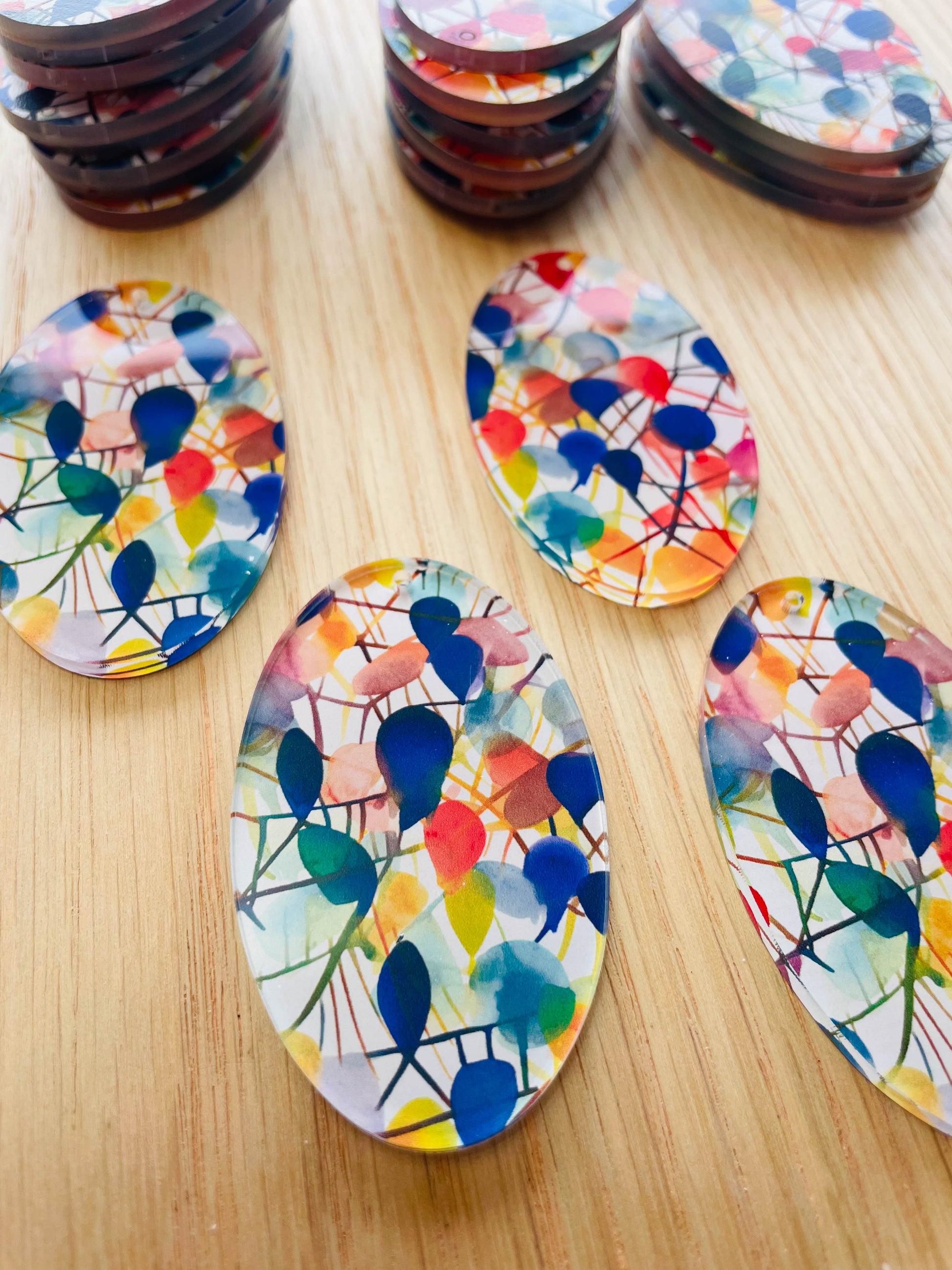 Our patterns can be printed onto Genuine Cowhide Leather, Double Sided Cork, Pine Plywood, White Acrylic or Clear Acrylic or Yupo Paper sheets or earring blanks for making your own earrings. Simply add your own embellishments and findings to make them truly your own.