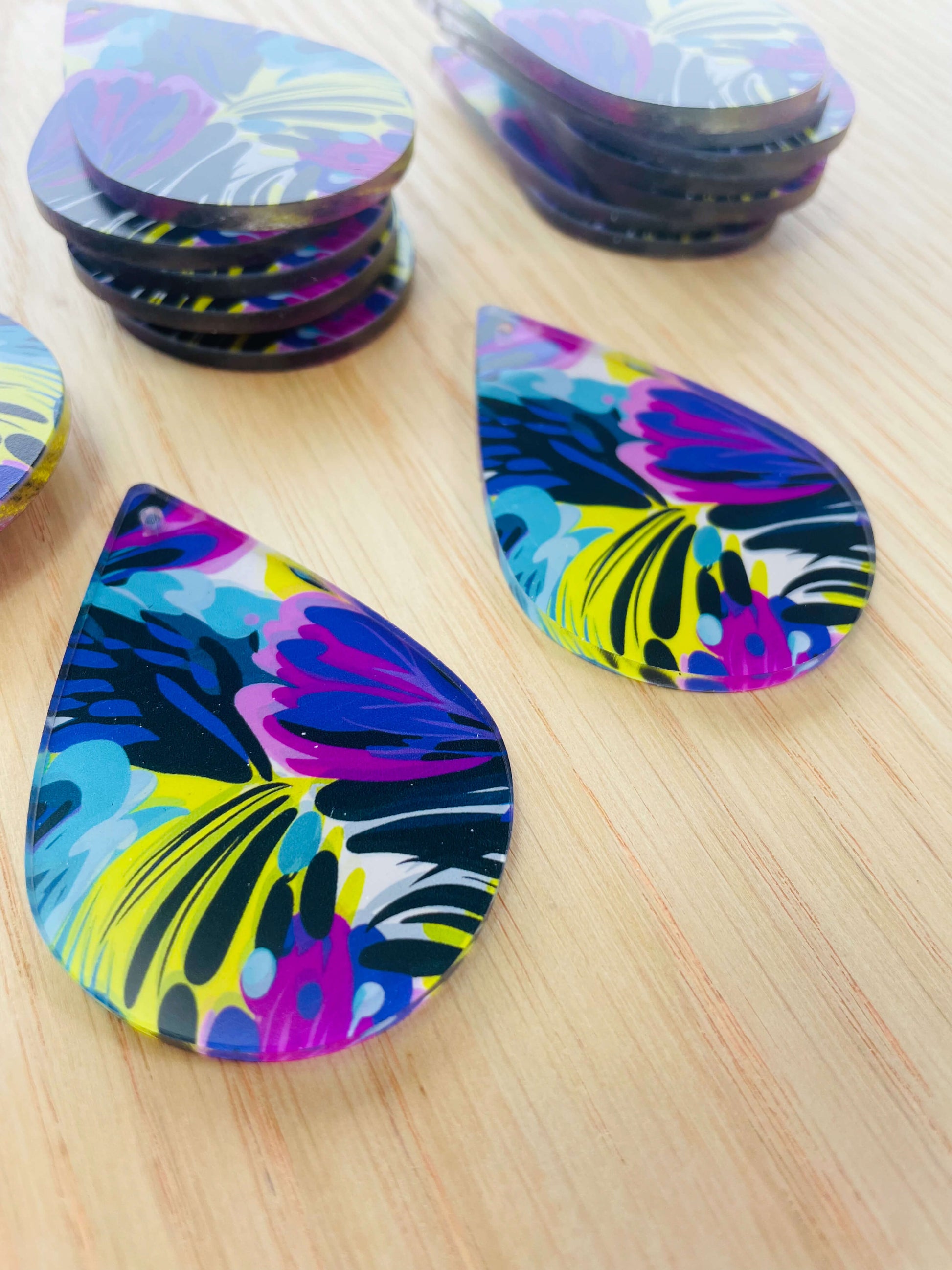 Our patterns can be printed onto Genuine Cowhide Leather, Double Sided Cork, Pine Plywood, White Acrylic or Clear Acrylic or Yupo Paper sheets or earring blanks for making your own earrings. Simply add your own embellishments and findings to make them truly your own.
