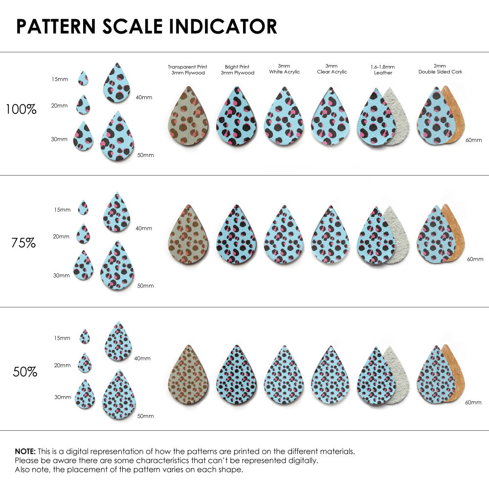 Our patterns can be printed onto Genuine Cowhide Leather, Double Sided Cork, Pine Plywood, White Acrylic or Clear Acrylic or Yupo Paper sheets or earring blanks for making your own earrings. Simply add your own embellishments and findings to make them truly your own.
