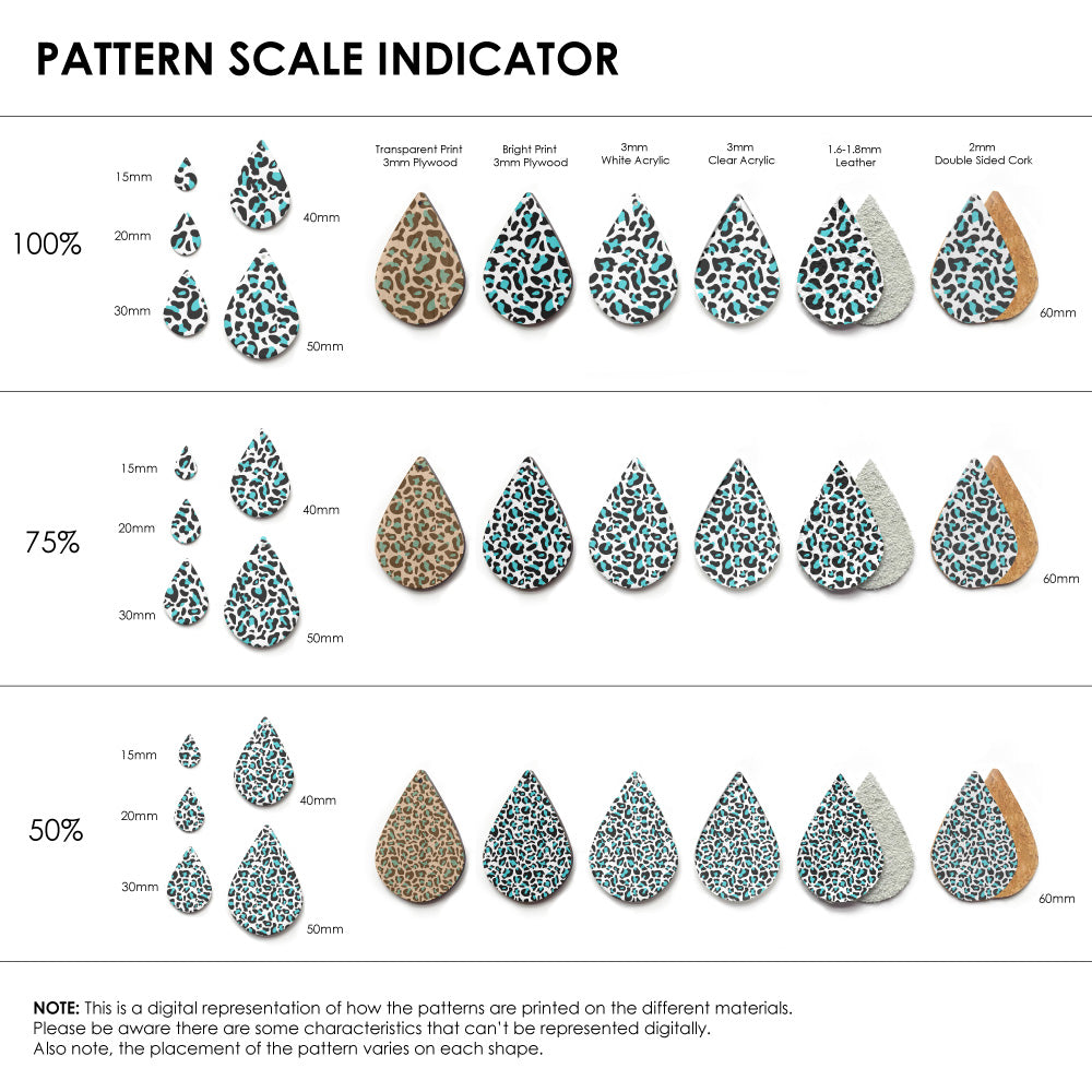 Our patterns can be printed onto Genuine Cowhide Leather, Double Sided Cork, Pine Plywood, White Acrylic or Clear Acrylic or Yupo Paper sheets or earring blanks for making your own earrings. Simply add your own embellishments and findings to make them truly your own.