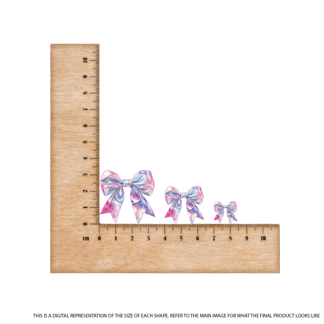The design of the bow is a iridescent look, it doesn't actually reflect like a iridescent material.