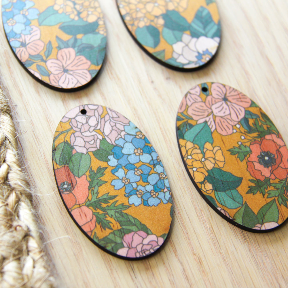 Our patterns can be printed onto Genuine Cowhide Leather, Double Sided Cork, Pine Plywood, White Acrylic or Clear Acrylic or Yupo Paper sheets or earring blanks for making your own earrings. Simply add your own embellishments and findings to make them truly your own.