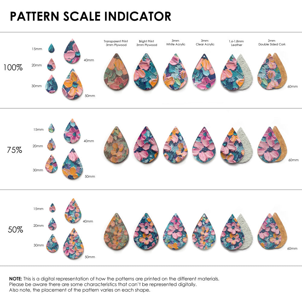 Our patterns can be printed onto Genuine Cowhide Leather, Double Sided Cork, Pine Plywood, White Acrylic or Clear Acrylic or Yupo Paper sheets or earring blanks for making your own earrings. Simply add your own embellishments and findings to make them truly your own.