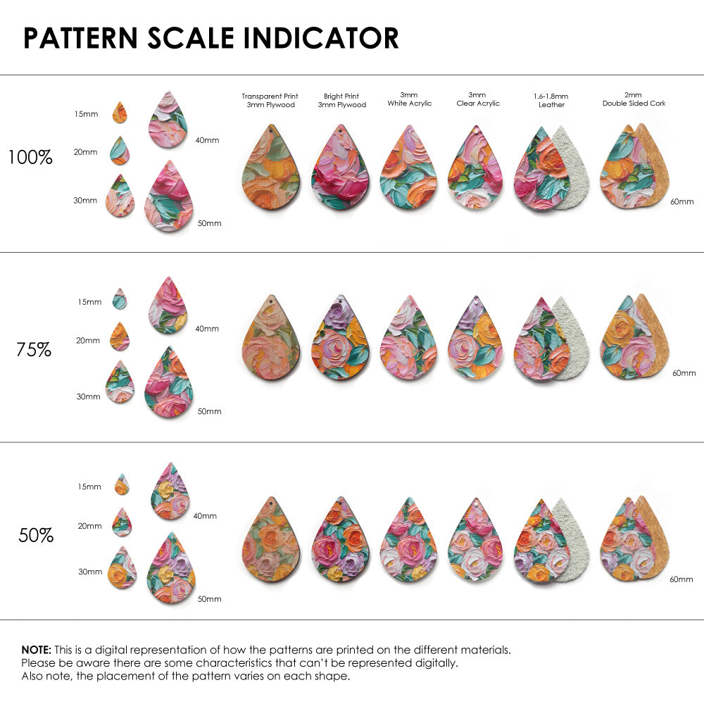 Our patterns can be printed onto Genuine Cowhide Leather, Double Sided Cork, Pine Plywood, White Acrylic or Clear Acrylic or Yupo Paper sheets or earring blanks for making your own earrings. Simply add your own embellishments and findings to make them truly your own.