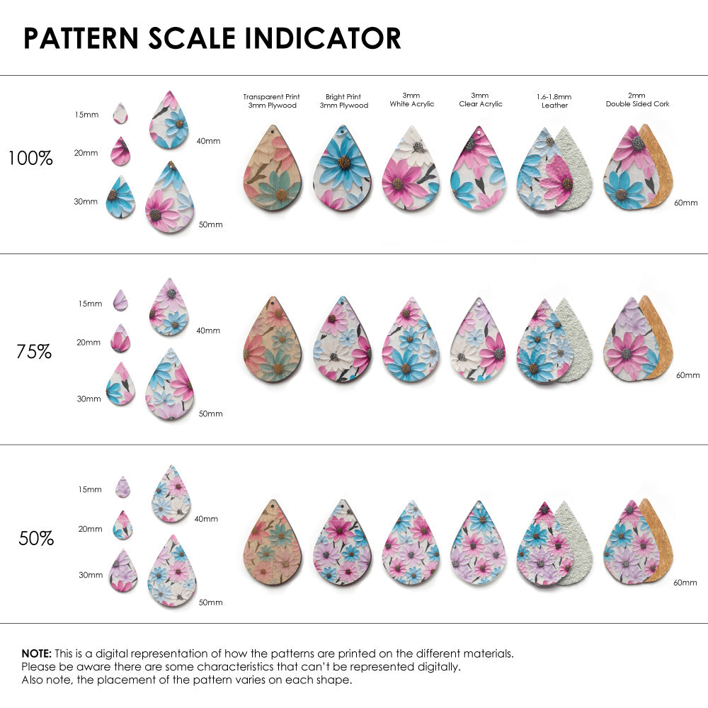 Our patterns can be printed onto Genuine Cowhide Leather, Double Sided Cork, Pine Plywood, White Acrylic or Clear Acrylic or Yupo Paper sheets or earring blanks for making your own earrings. Simply add your own embellishments and findings to make them truly your own.