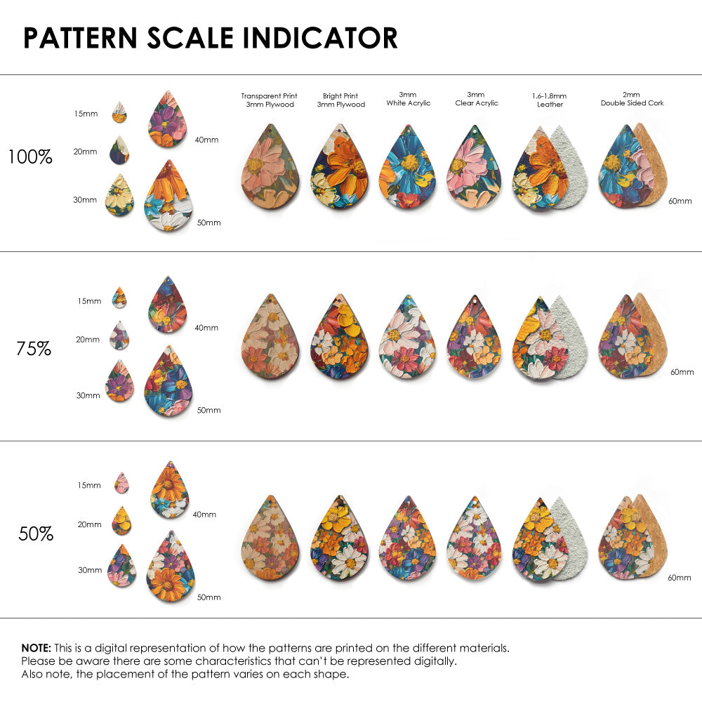 Our patterns can be printed onto Genuine Cowhide Leather, Double Sided Cork, Pine Plywood, White Acrylic or Clear Acrylic or Yupo Paper sheets or earring blanks for making your own earrings. Simply add your own embellishments and findings to make them truly your own.