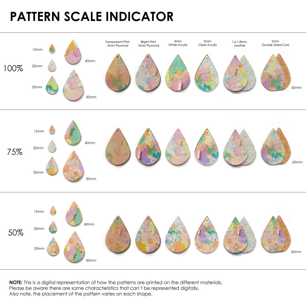 Our patterns can be printed onto Genuine Cowhide Leather, Double Sided Cork, Pine Plywood, White Acrylic or Clear Acrylic or Yupo Paper sheets or earring blanks for making your own earrings. Simply add your own embellishments and findings to make them truly your own.