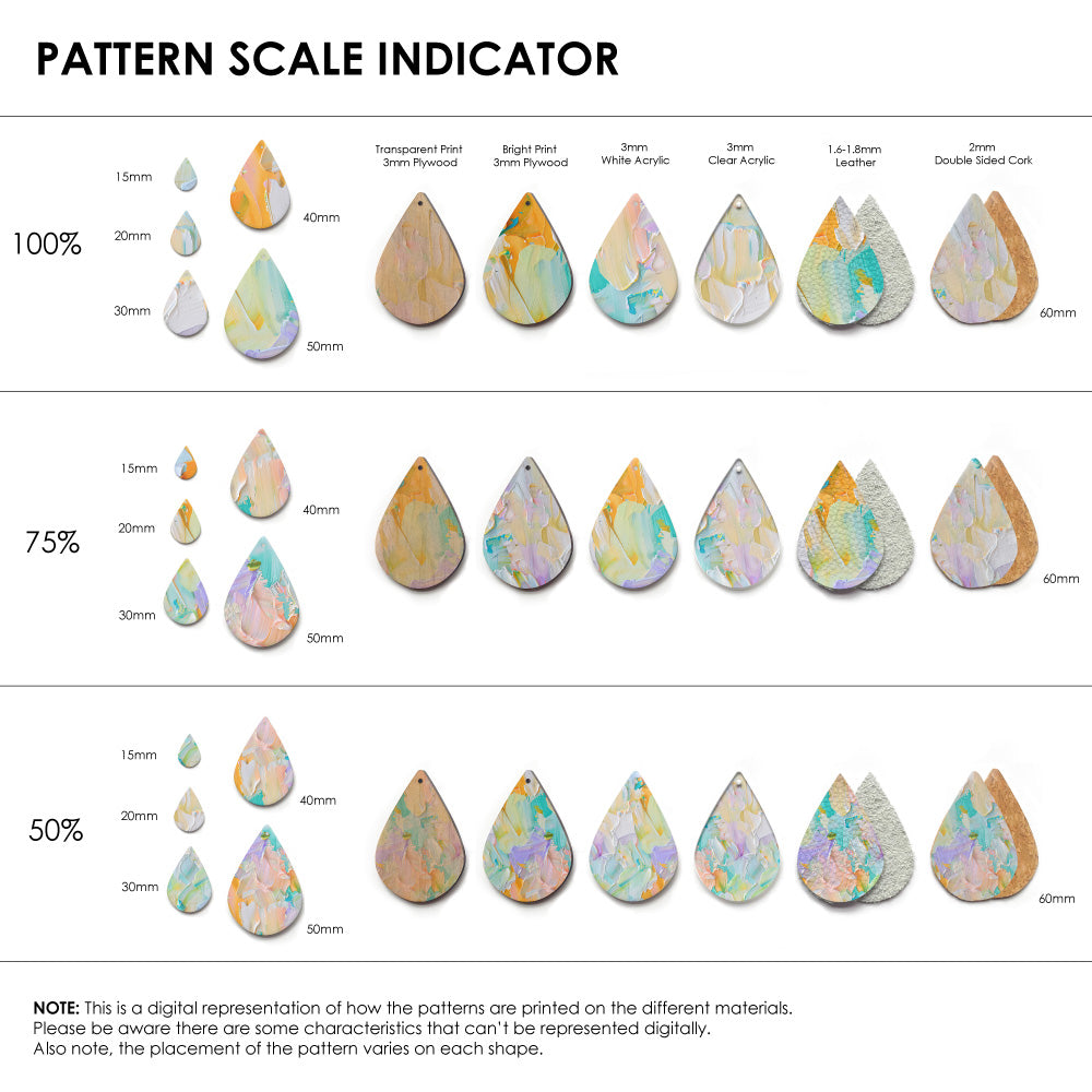 Our patterns can be printed onto Genuine Cowhide Leather, Double Sided Cork, Pine Plywood, White Acrylic or Clear Acrylic or Yupo Paper sheets or earring blanks for making your own earrings. Simply add your own embellishments and findings to make them truly your own.
