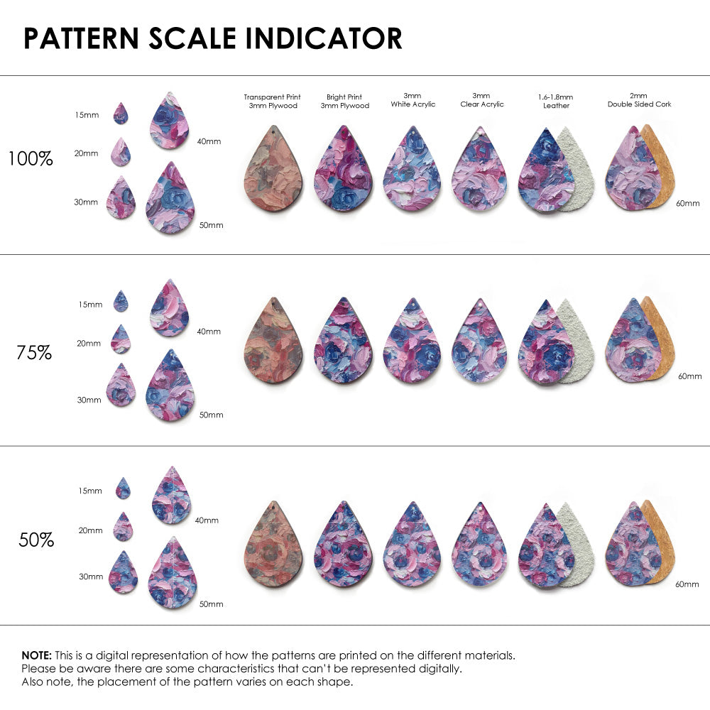 Our patterns can be printed onto Genuine Cowhide Leather, Double Sided Cork, Pine Plywood, White Acrylic or Clear Acrylic or Yupo Paper sheets or earring blanks for making your own earrings. Simply add your own embellishments and findings to make them truly your own.