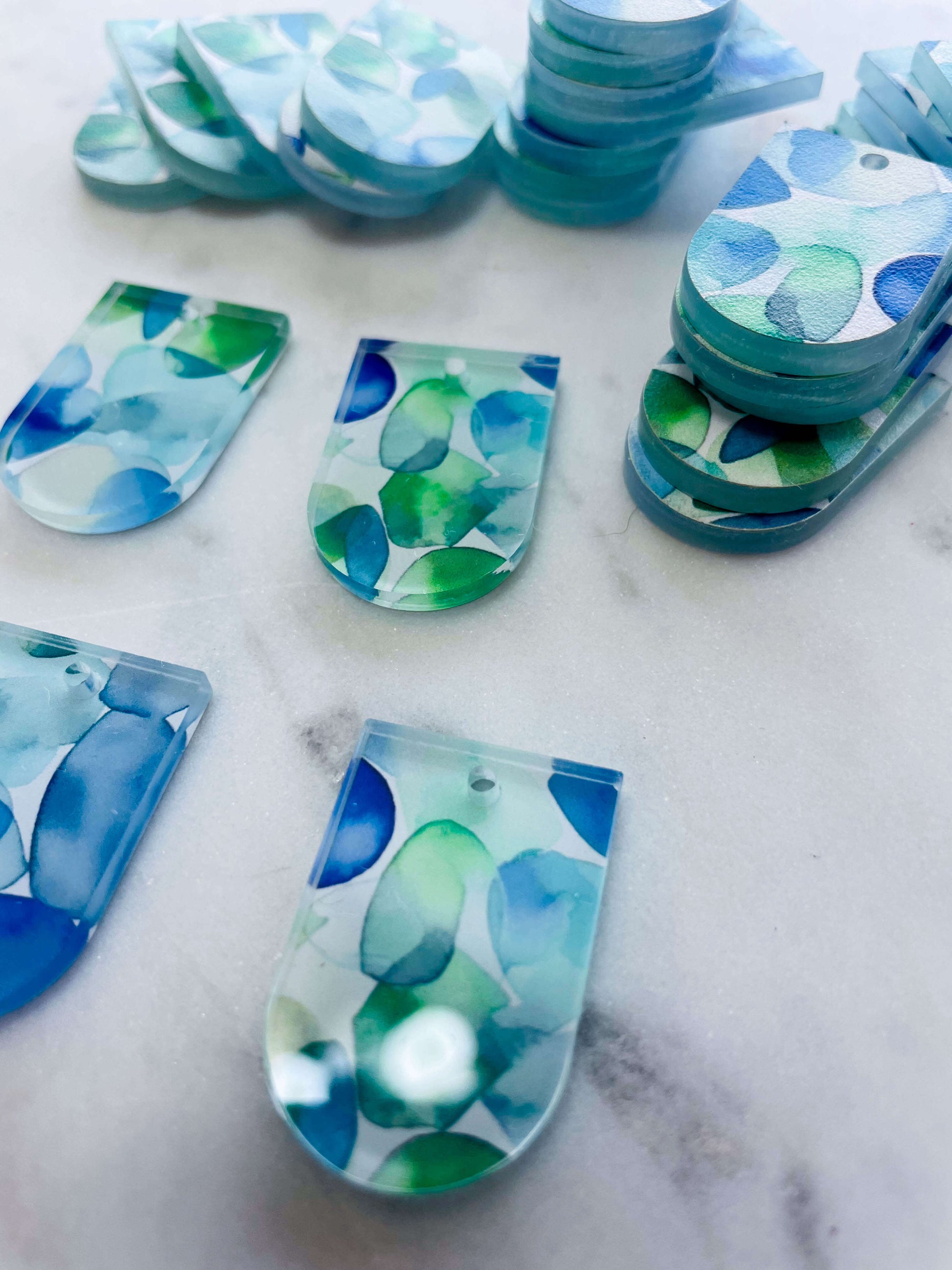 Our patterns can be printed onto Genuine Cowhide Leather, Double Sided Cork, Pine Plywood, White Acrylic or Clear Acrylic or Yupo Paper sheets or earring blanks for making your own earrings. Simply add your own embellishments and findings to make them truly your own.