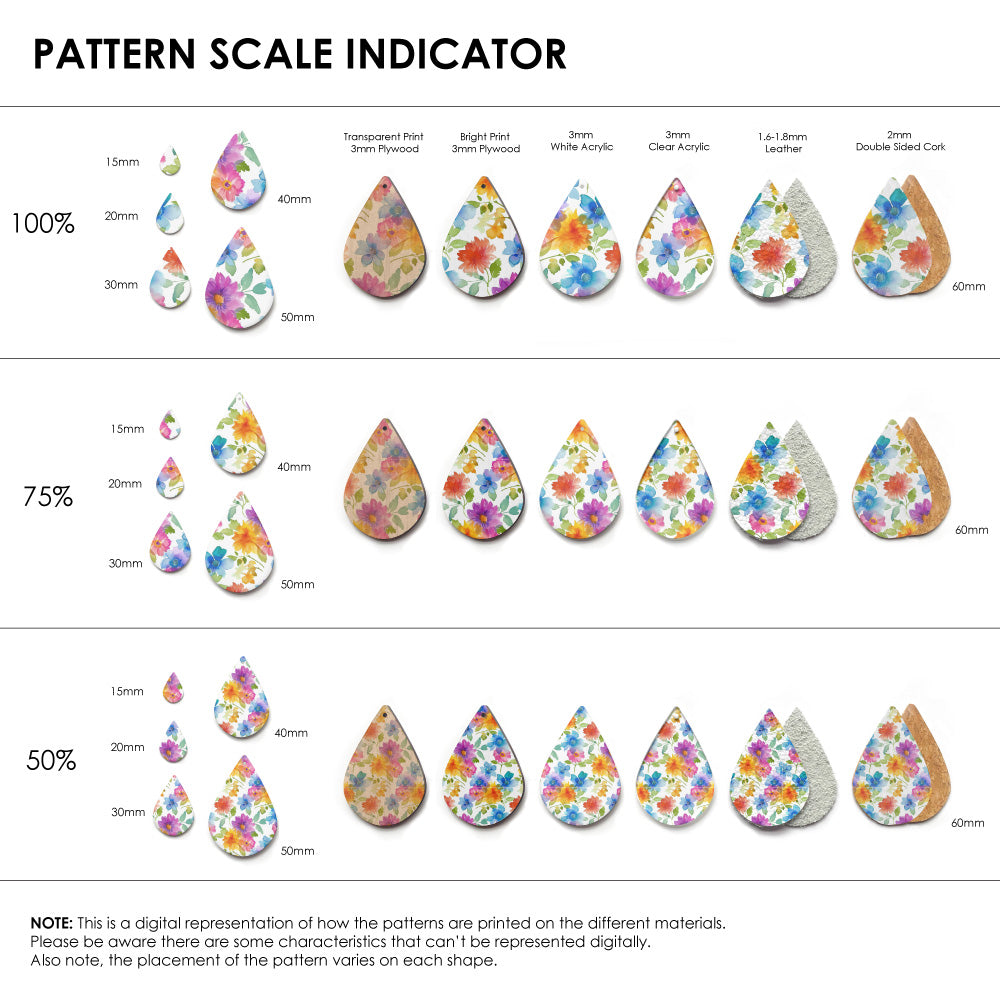 Our patterns can be printed onto Genuine Cowhide Leather, Double Sided Cork, Pine Plywood, White Acrylic or Clear Acrylic or Yupo Paper sheets or earring blanks for making your own earrings. Simply add your own embellishments and findings to make them truly your own.