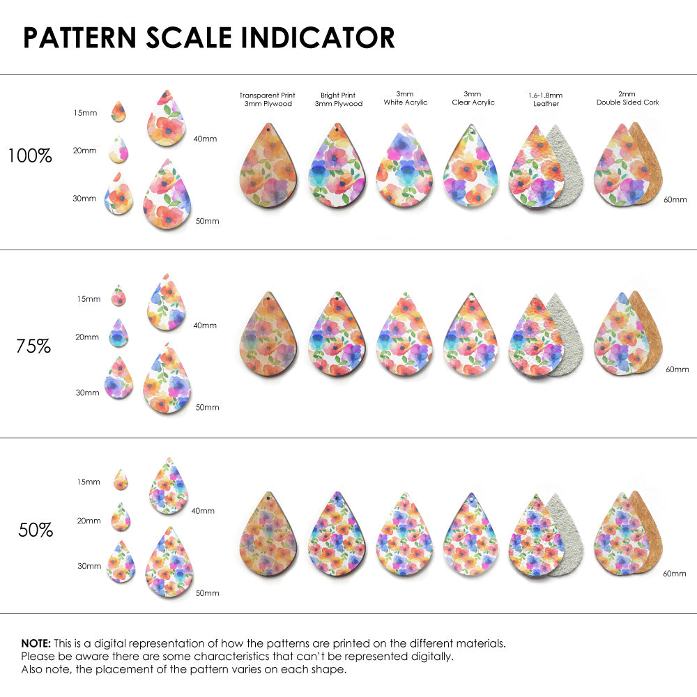 Our patterns can be printed onto Genuine Cowhide Leather, Double Sided Cork, Pine Plywood, White Acrylic or Clear Acrylic or Yupo Paper sheets or earring blanks for making your own earrings. Simply add your own embellishments and findings to make them truly your own.
