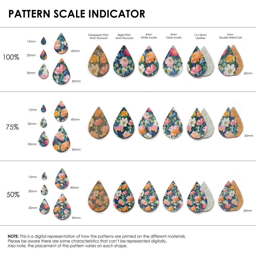 Our patterns can be printed onto Genuine Cowhide Leather, Double Sided Cork, Pine Plywood, White Acrylic or Clear Acrylic or Yupo Paper sheets or earring blanks for making your own earrings. Simply add your own embellishments and findings to make them truly your own.