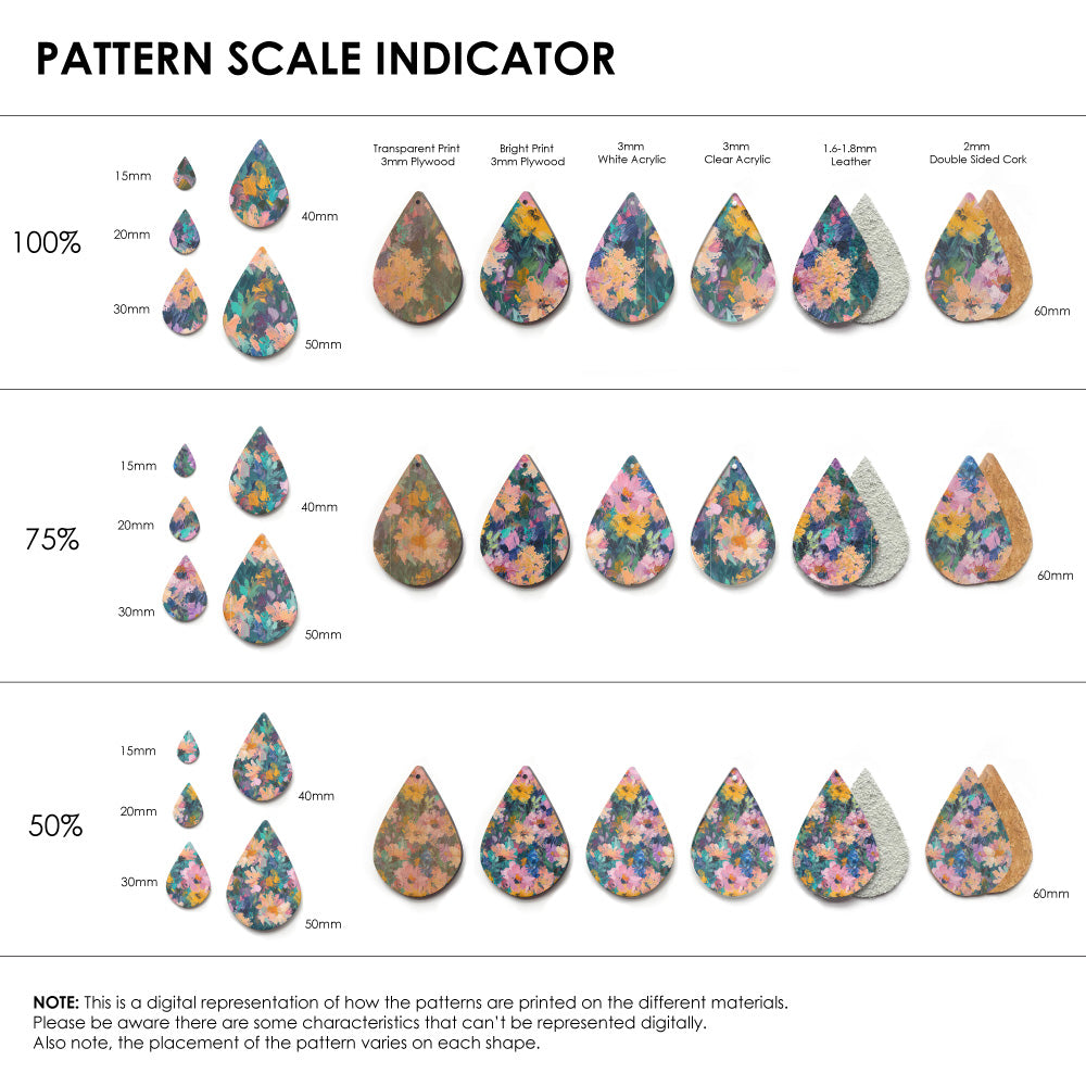Our patterns can be printed onto Genuine Cowhide Leather, Double Sided Cork, Pine Plywood, White Acrylic or Clear Acrylic or Yupo Paper sheets or earring blanks for making your own earrings. Simply add your own embellishments and findings to make them truly your own.