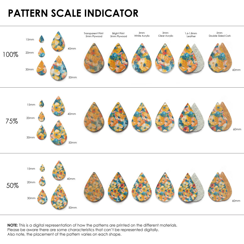 Our patterns can be printed onto Genuine Cowhide Leather, Double Sided Cork, Pine Plywood, White Acrylic or Clear Acrylic or Yupo Paper sheets or earring blanks for making your own earrings. Simply add your own embellishments and findings to make them truly your own.