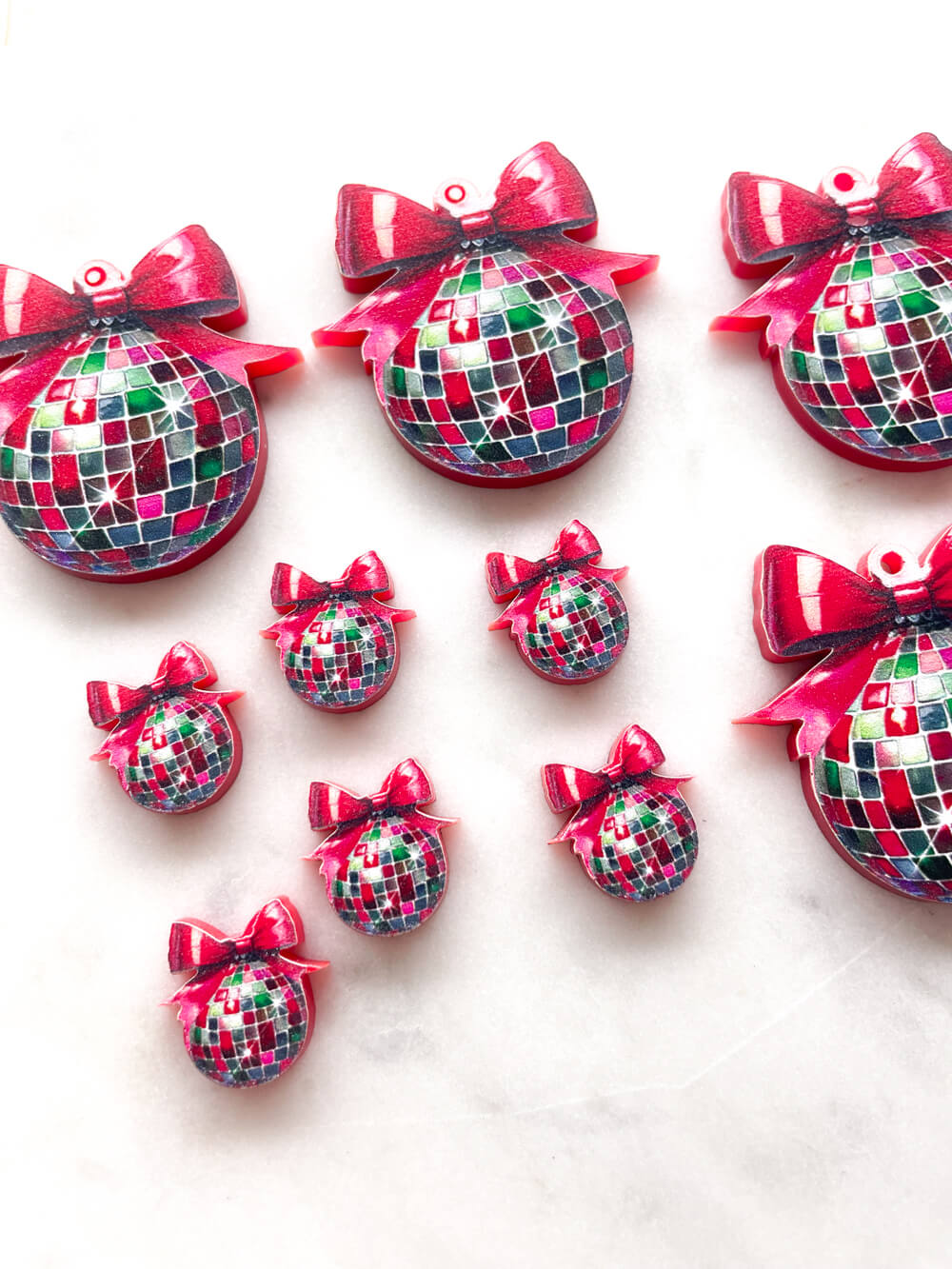Studs - Red Disco Ball Bauble on Red Acrylic