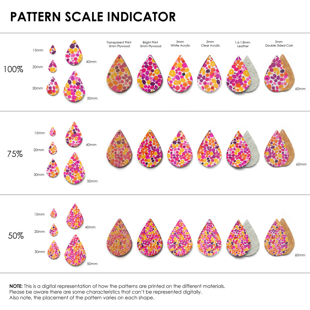 Our patterns can be printed onto Genuine Cowhide Leather, Double Sided Cork, Pine Plywood, White Acrylic or Clear Acrylic or Yupo Paper sheets or earring blanks for making your own earrings. Simply add your own embellishments and findings to make them truly your own.