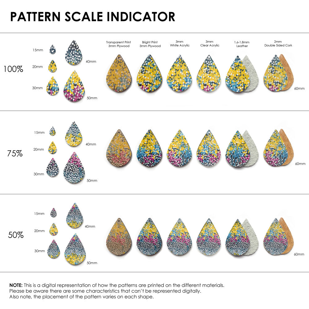 Our patterns can be printed onto Genuine Cowhide Leather, Double Sided Cork, Pine Plywood, White Acrylic or Clear Acrylic or Yupo Paper sheets or earring blanks for making your own earrings. Simply add your own embellishments and findings to make them truly your own.
