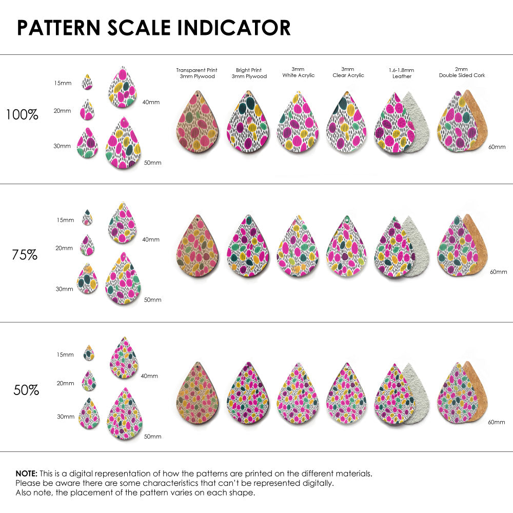Our patterns can be printed onto Genuine Cowhide Leather, Double Sided Cork, Pine Plywood, White Acrylic or Clear Acrylic or Yupo Paper sheets or earring blanks for making your own earrings. Simply add your own embellishments and findings to make them truly your own.