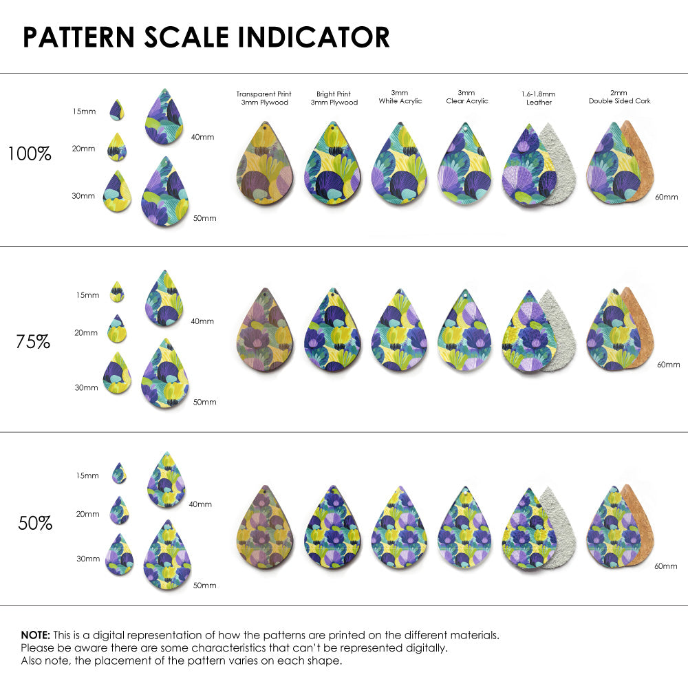 Our patterns can be printed onto Genuine Cowhide Leather, Double Sided Cork, Pine Plywood, White Acrylic or Clear Acrylic or Yupo Paper sheets or earring blanks for making your own earrings. Simply add your own embellishments and findings to make them truly your own.