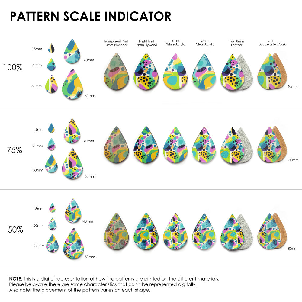 Our patterns can be printed onto Genuine Cowhide Leather, Double Sided Cork, Pine Plywood, White Acrylic or Clear Acrylic or Yupo Paper sheets or earring blanks for making your own earrings. Simply add your own embellishments and findings to make them truly your own.