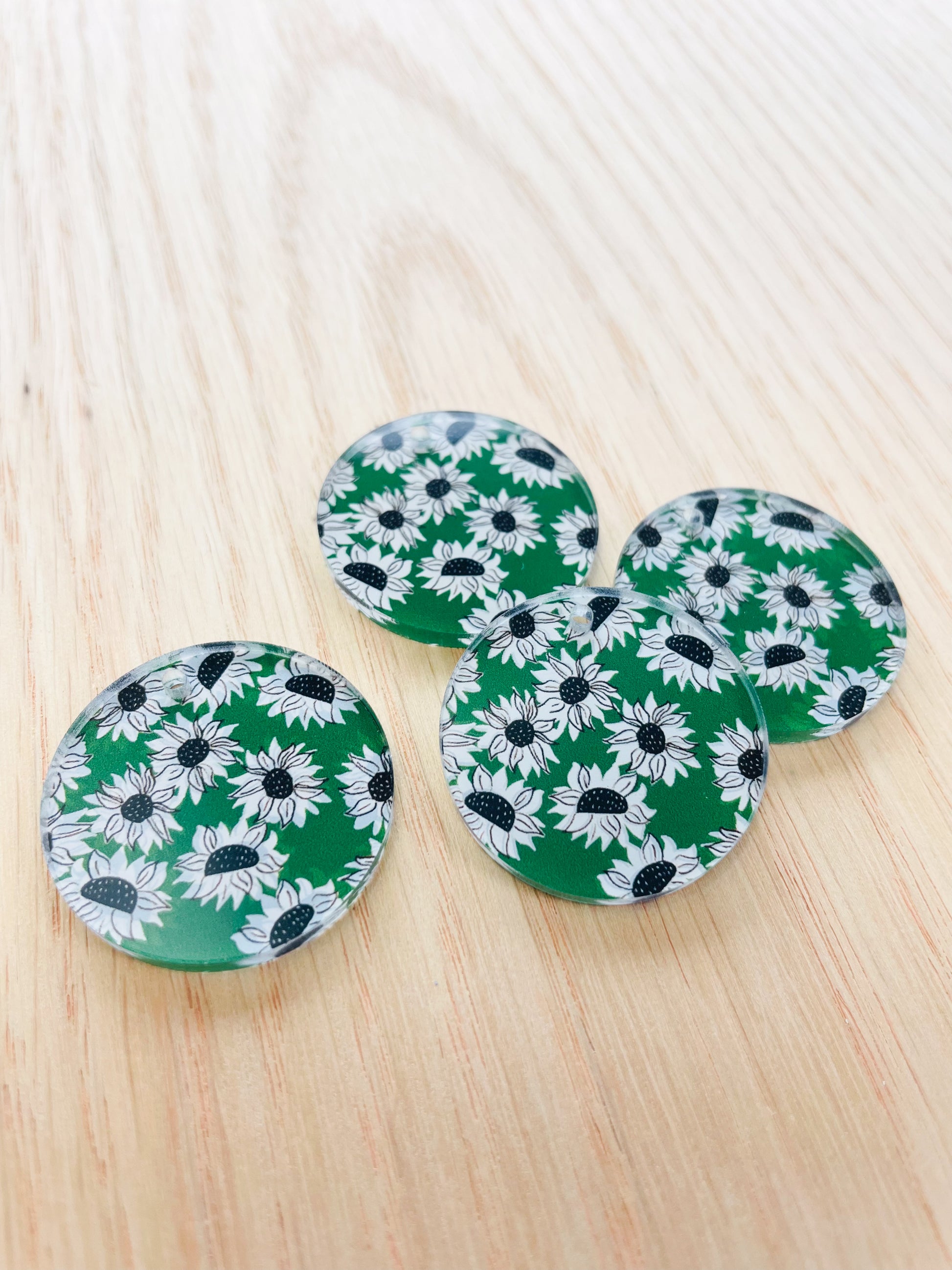 Clear Acrylic - 20mm Circle - Sunflower - 09